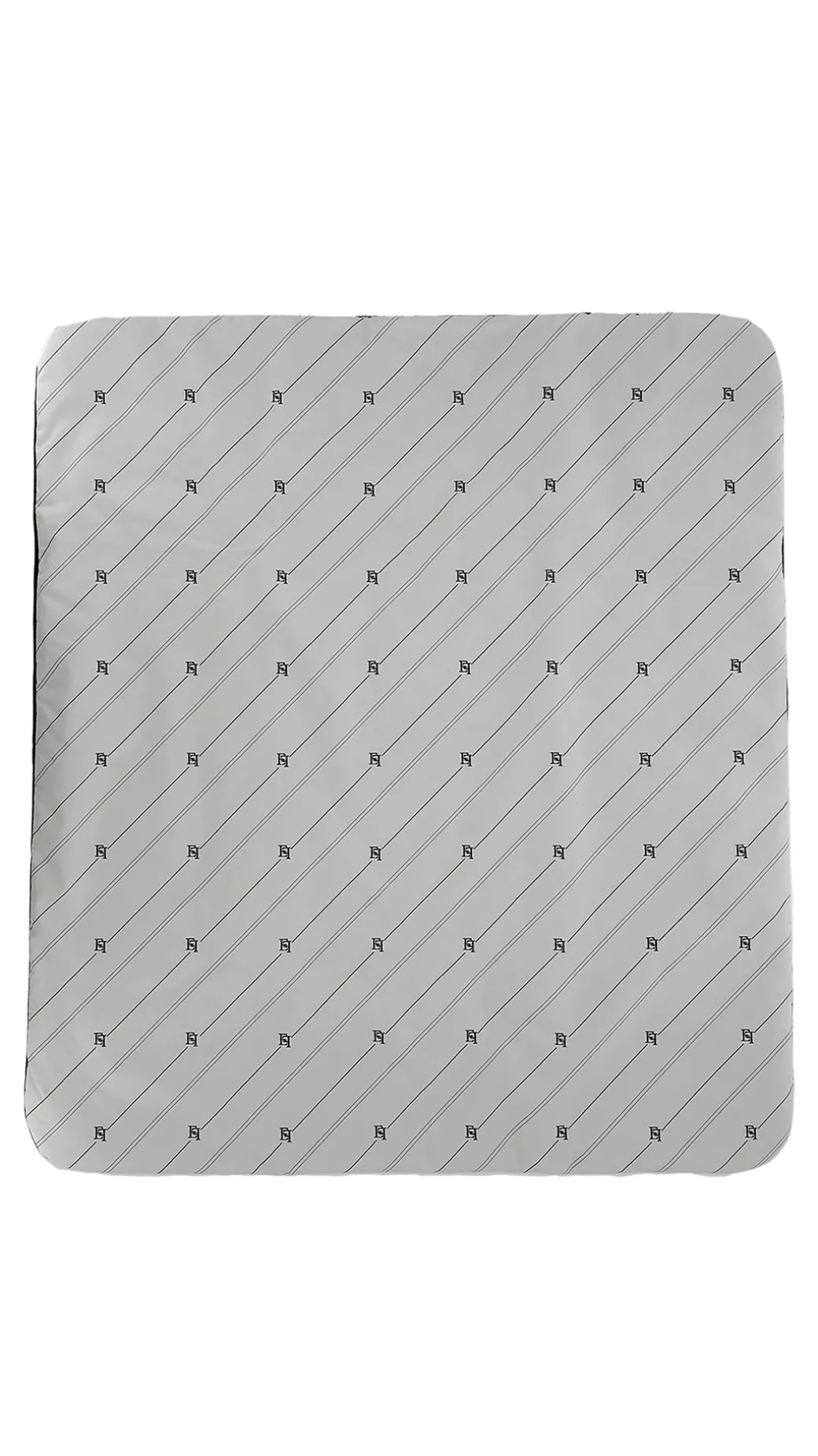 Anche la nanna vuole la sua parte: eccoti una delicata copertina Elisabetta Franchi La mia bambina che riprende una delle stampa di stagione – la stampa righe con logo EF – per un accessorio da culla in tono con lo stile di famiglia.