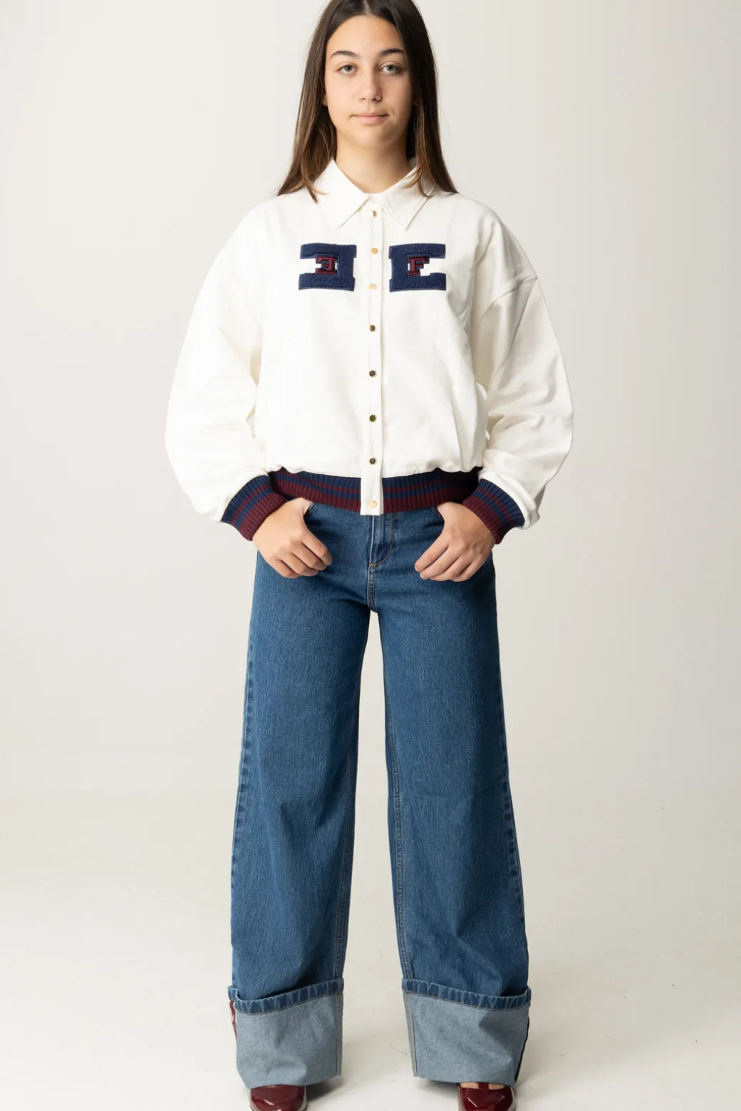 Un’originale felpa Elisabetta Franchi La mia bambina che racconta del mood college della collezione attraverso l’uso dei colori e del logo ricamato sul petto. Colletto a camicia, fila di bottoncini e orli a costine a contrasto di colore, un capo trendy e originale per outfit da tutti i giorni.