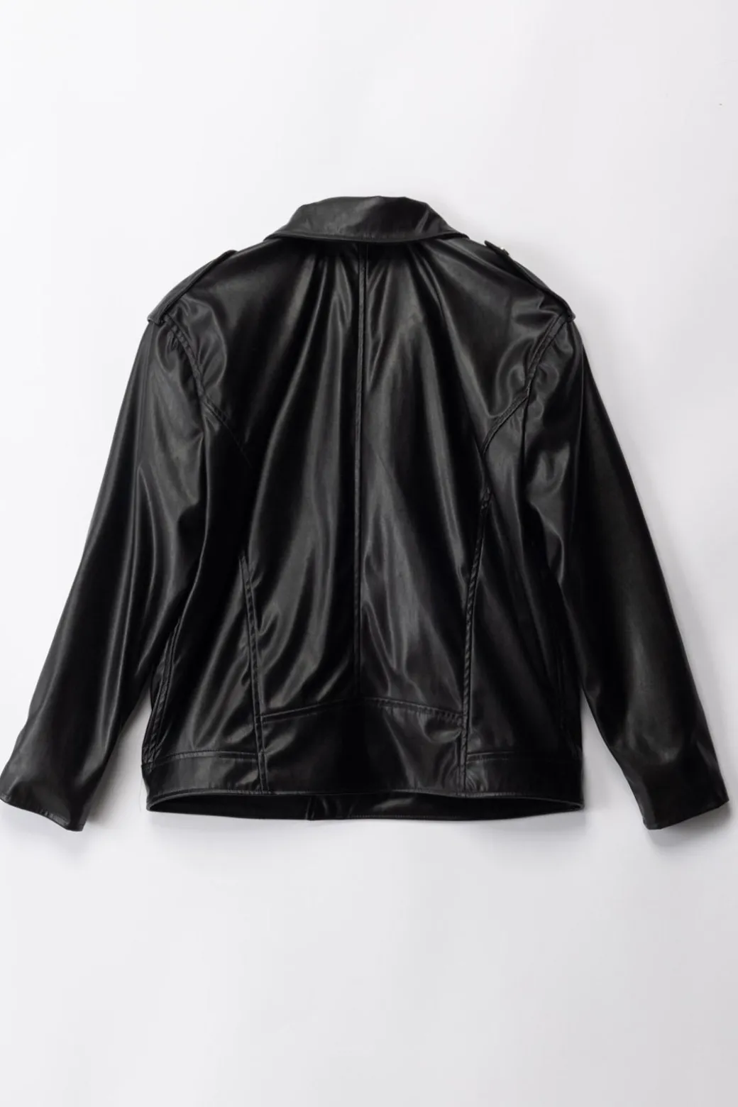 Giacca in pelle Elisabetta Franchi La mia Bambina per un outfit trendy e grintoso, adatto alle piccole amanti dello stile. Realizzato con una zip gold asimmetrica che richiama le zip presenti sulle maniche e il tono gold dei bottoncini posti sulle tasche, ai colletti e sulle spalle.