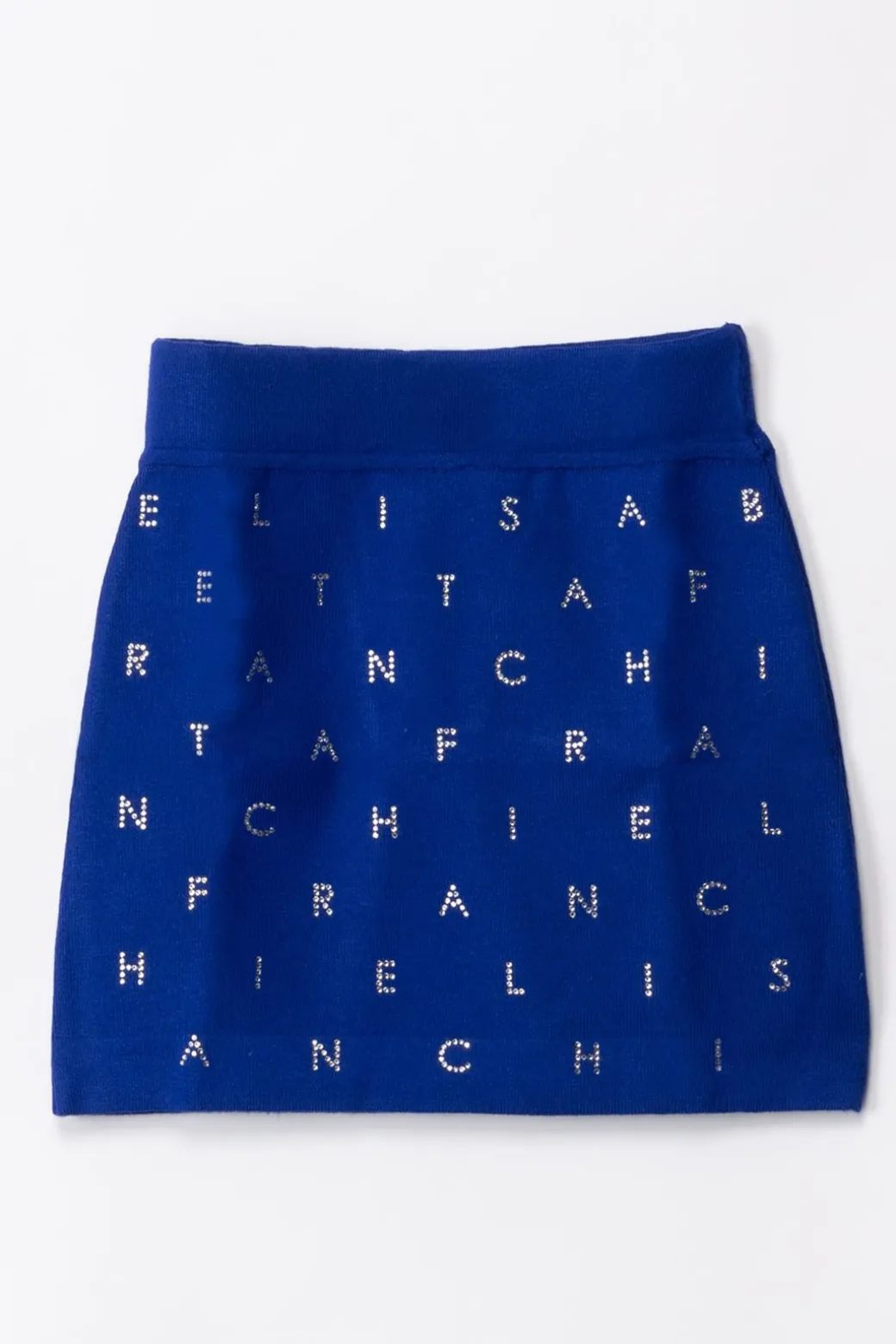 Eleganza chic per le più piccole! La gonna Elisabetta Franchi la mia Bambina donerà un tocco di stile unico agli outfit della tua giovane fashonista! Tessuto morbido, fascia in vita e un design ricco di luce grazie al logo lettering in strass.