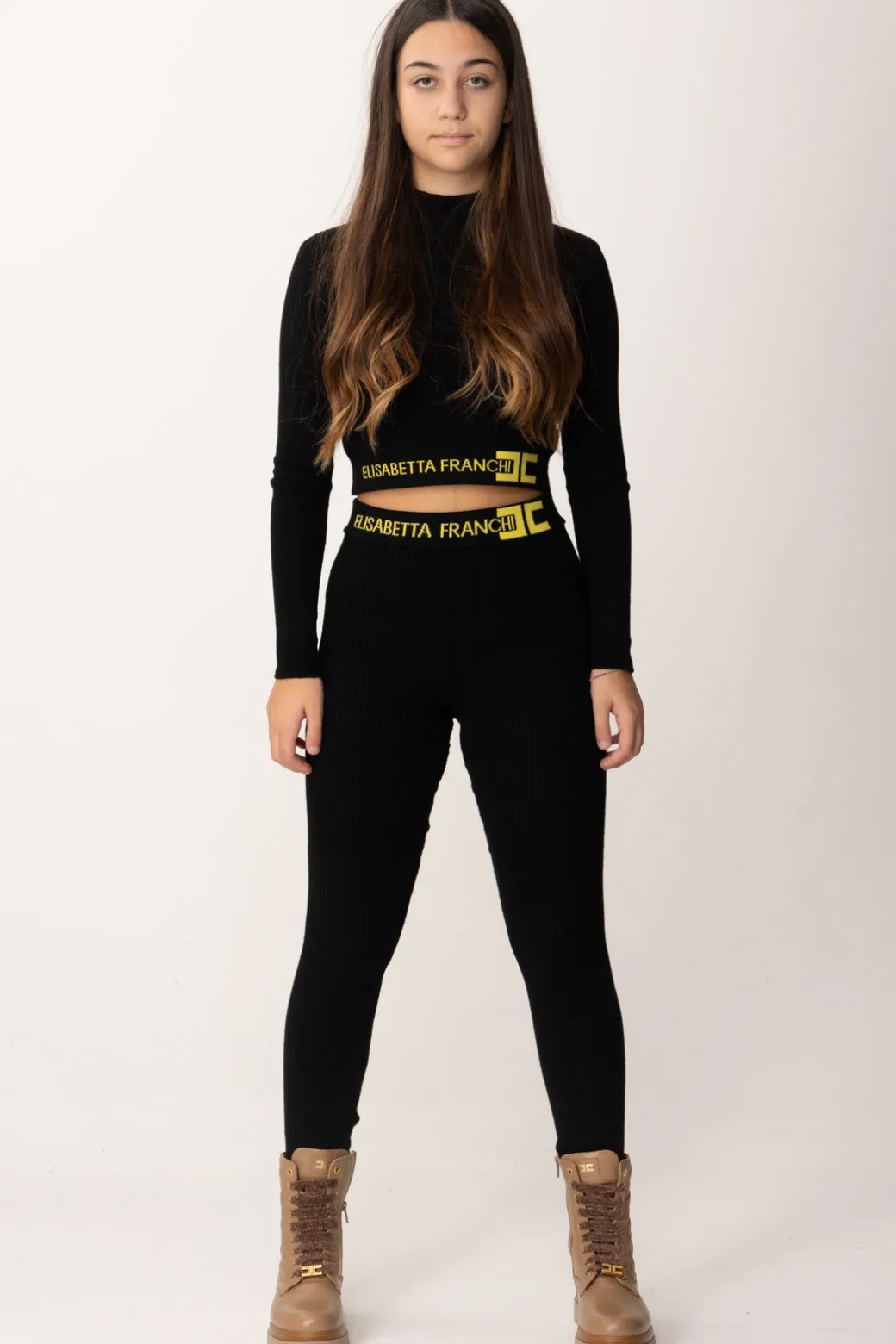 Super comodi ma anche super stilosi leggings Elisabetta Franchi La mia bambina a costine, realizzati in maglia viscosa. Il punto vita è anche un punto di forza di questo capo, grazie alla stampa logo lettering a contrasto di colore: un dettaglio che farà la sua figura lasciato a vista. E sai come si completa alla perfezione questo outfit? Con la maglia in viscosa a taglio corpino con la stessa caratteristica!