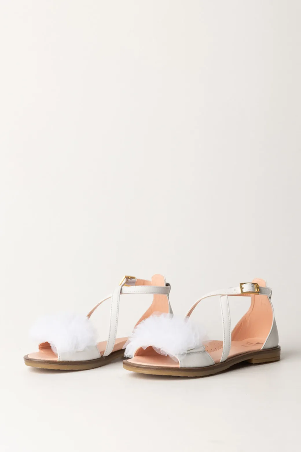 Elisabetta Franchi Bambina Sandali Flat con TulleWHITE