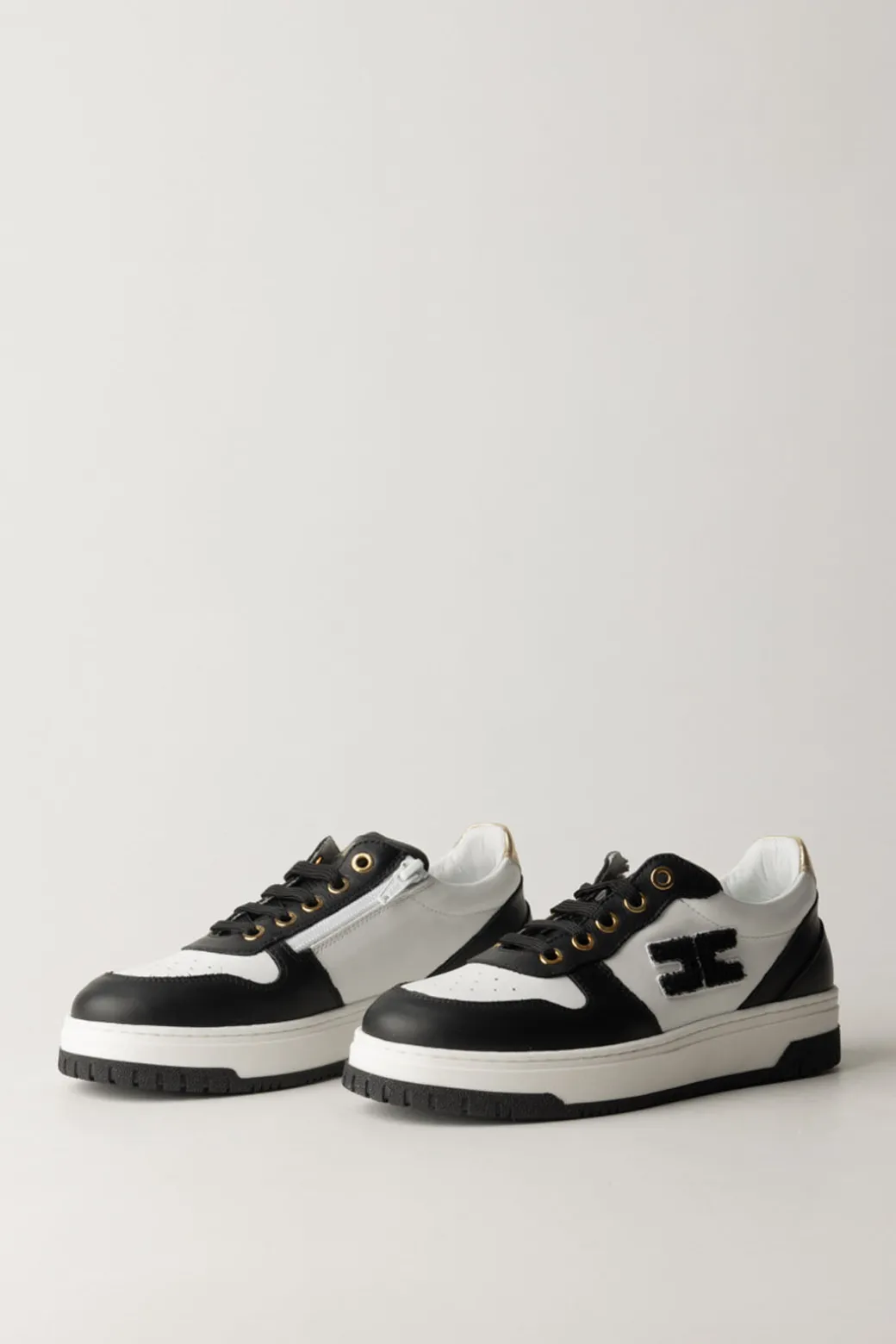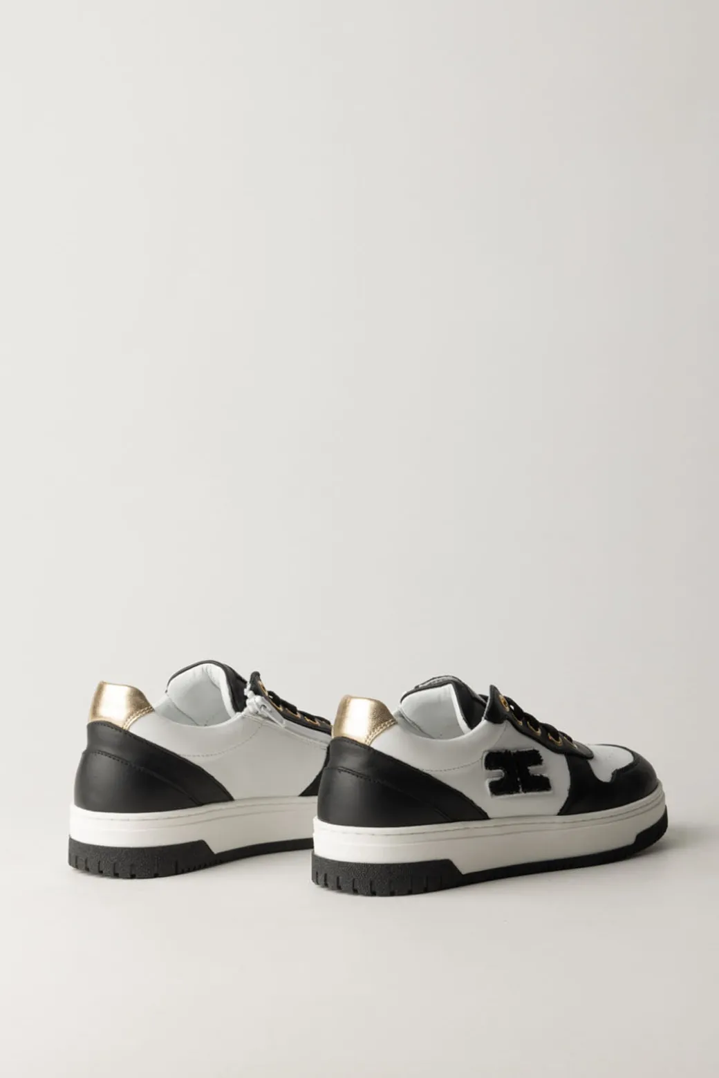 Casual e comode Sneakers La mia bambina Elisabetta Franchi in pelle liscia con inserti a contrasto di colore e tallone in oro. Così come altri pezzi della collezione, il fianco è ornato da una toppa logo in punto spugna che le rende contemporaneamente evergreen e in linea con la stagione: hai bisogno di altri motivi ancora per sceglierle?