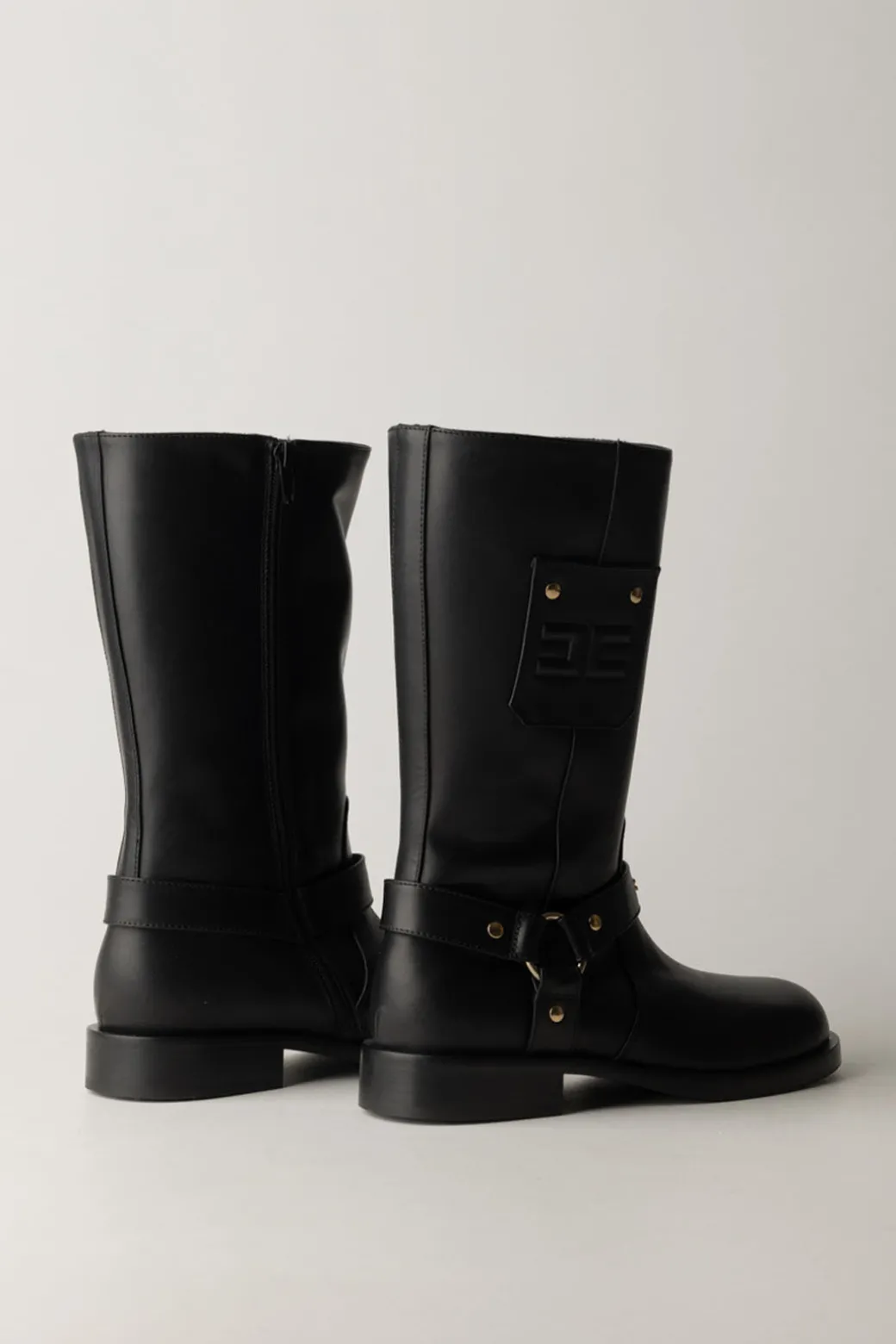 Anche un classico di questo brand non è mai classico: c’è sempre un dettaglio che li fa notare e li connette alla collezione o al mood del momento. Così vale per lo scudetto con logo impresso sui lati di questi stivali La mia bambina Elisabetta Franchi. Pelle liscia, suola in gomma, gamba larga: tutto quello che ti serve per creare outfit con calzature belle e confortevoli.