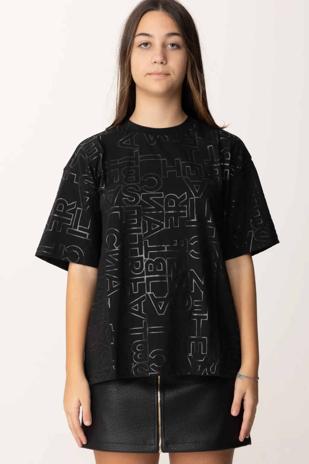 T-shirt La mia bambina Elisabetta Franchi della cui natura non potresti assolutamente dubitare: è la stampa logo lettering all over in tinta a dirti subito chi è la sua designer! Allure casual, divertiti a creare tanti abbinamenti con i bottom della collezione: con il giusto accostamento, sarà perfetta anche in soluzioni più eleganti del classico denim da tutti i giorni.