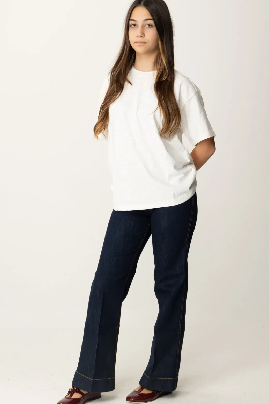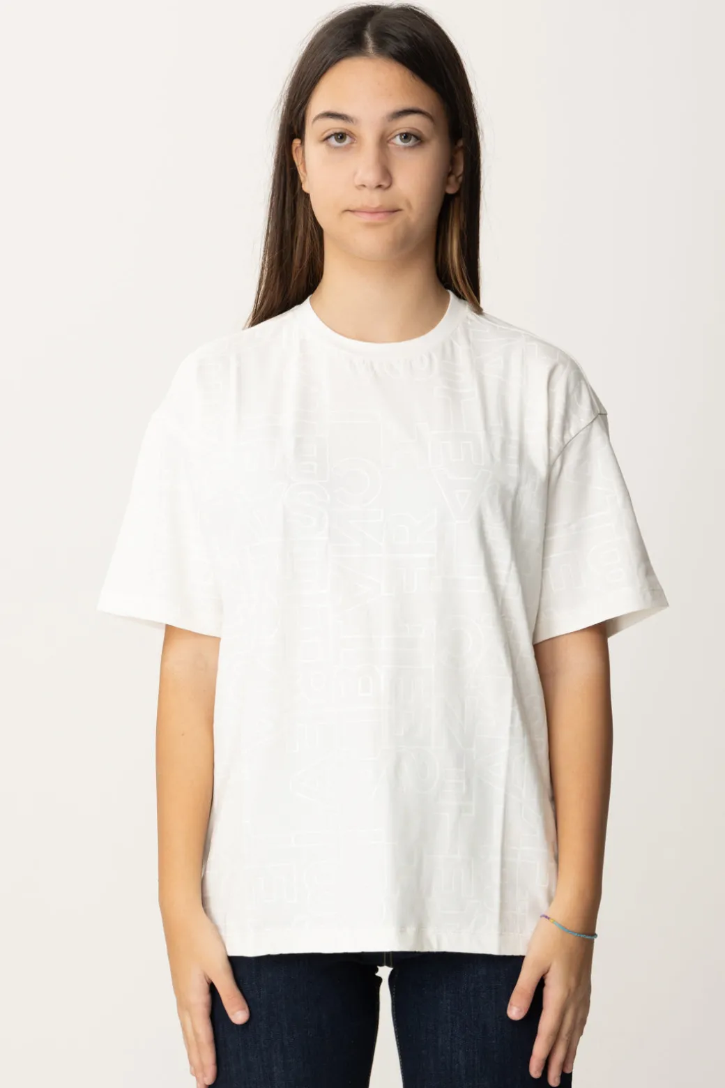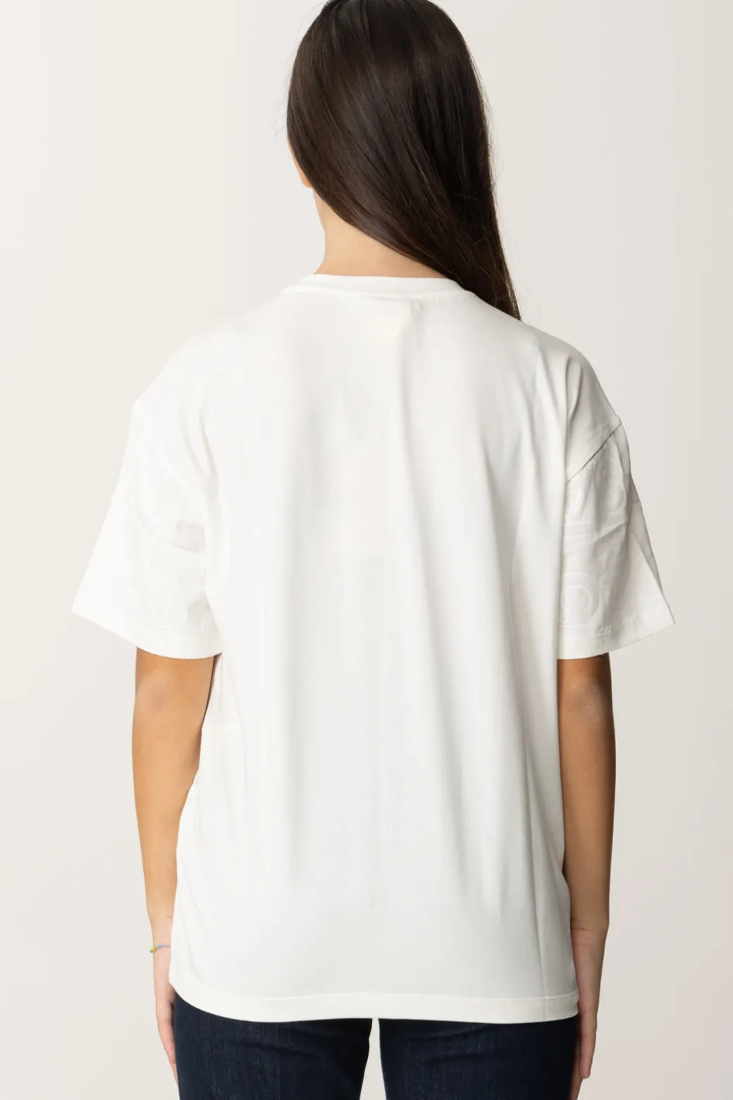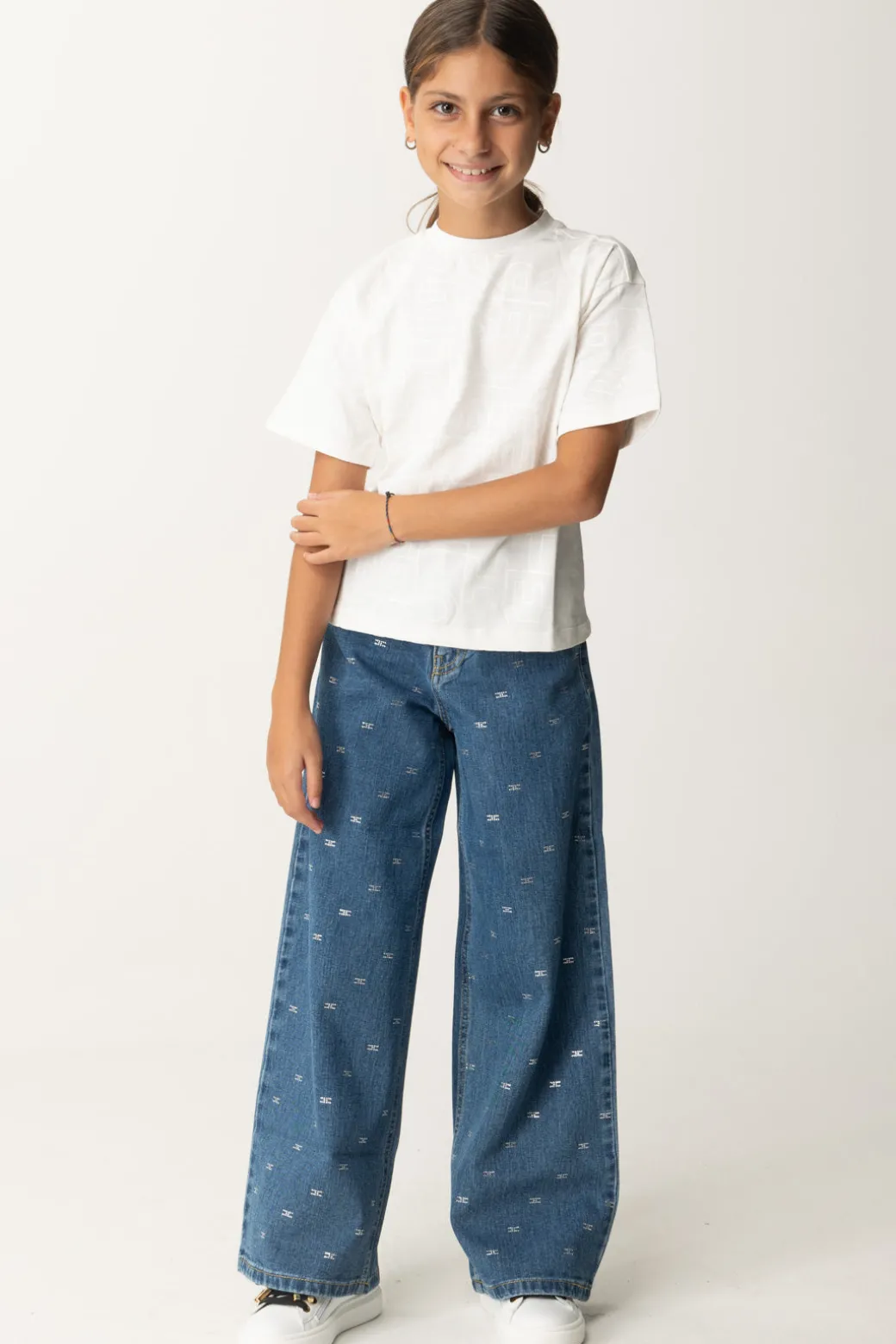 T-shirt La mia bambina Elisabetta Franchi della cui natura non potresti assolutamente dubitare: è la stampa logo lettering all over in tinta a dirti subito chi è la sua designer! Allure casual, divertiti a creare tanti abbinamenti con i bottom della collezione: con il giusto accostamento, sarà perfetta anche in soluzioni più eleganti del classico denim da tutti i giorni.