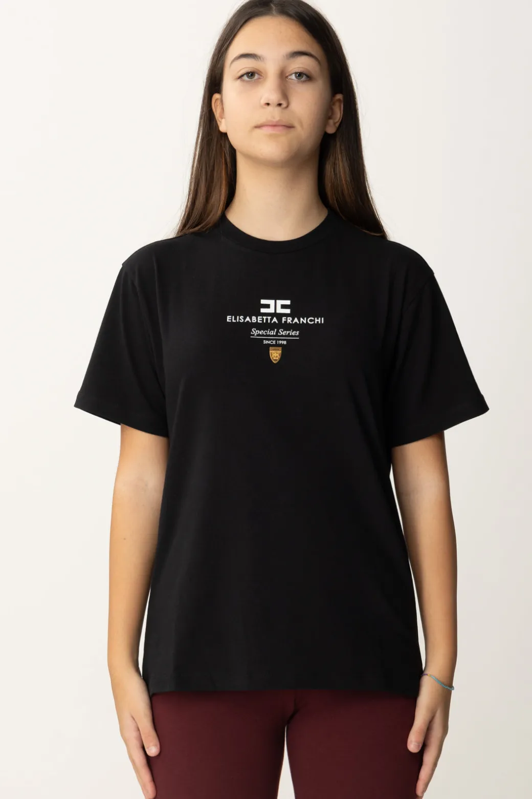 T-shirt La mia bambina Elisabetta Franchi con stampa “Special Series” e placchetta logo per la tua special girl: comoda e versatile, con manica corta e scollo girocollo, proposta in tinte basiche e pertanto super versatile. Abbinala ad un jeans e sneakers per la vita di tutti i girni, così come ad un pantalone elegante e una ballerina per una serata chic in famiglia.