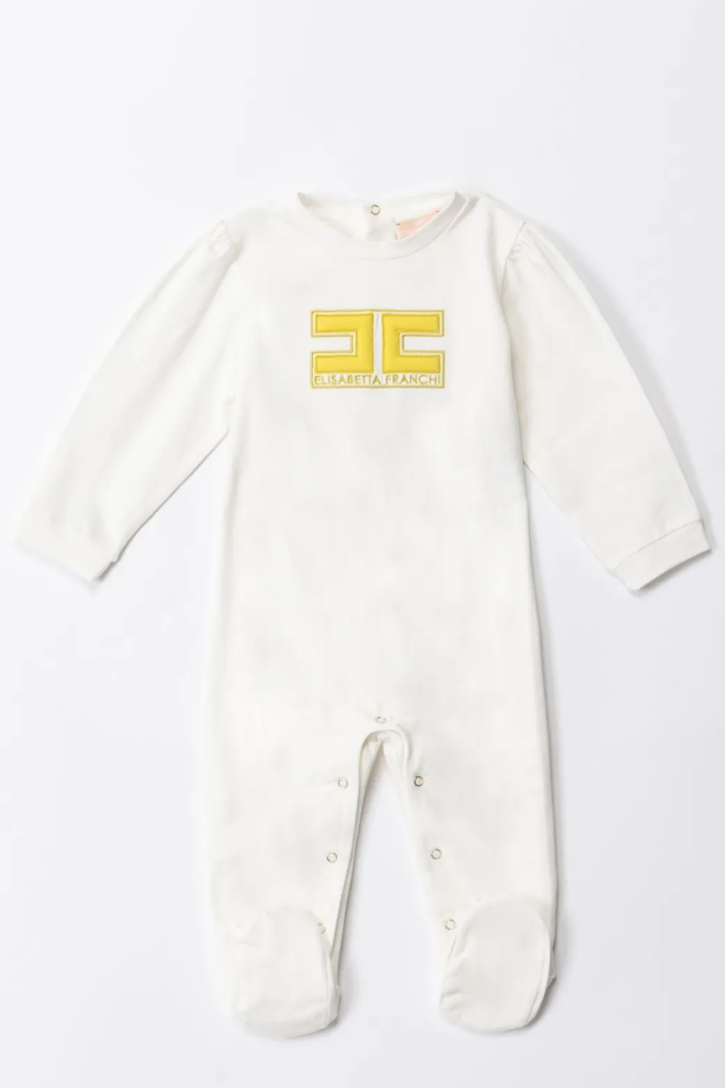 Tutina Elisabetta Franchi La mia Bambina che si mostra come un un tenero abbraccio di stile e comfort. Il logo embossed ricamato aggiunge un tocco di colore rendendo questa tutina speciale per la tua piccola principessa. Sarà l’outfit perfetto per farla sentire al centro dell’attenzione anche con semplicità!