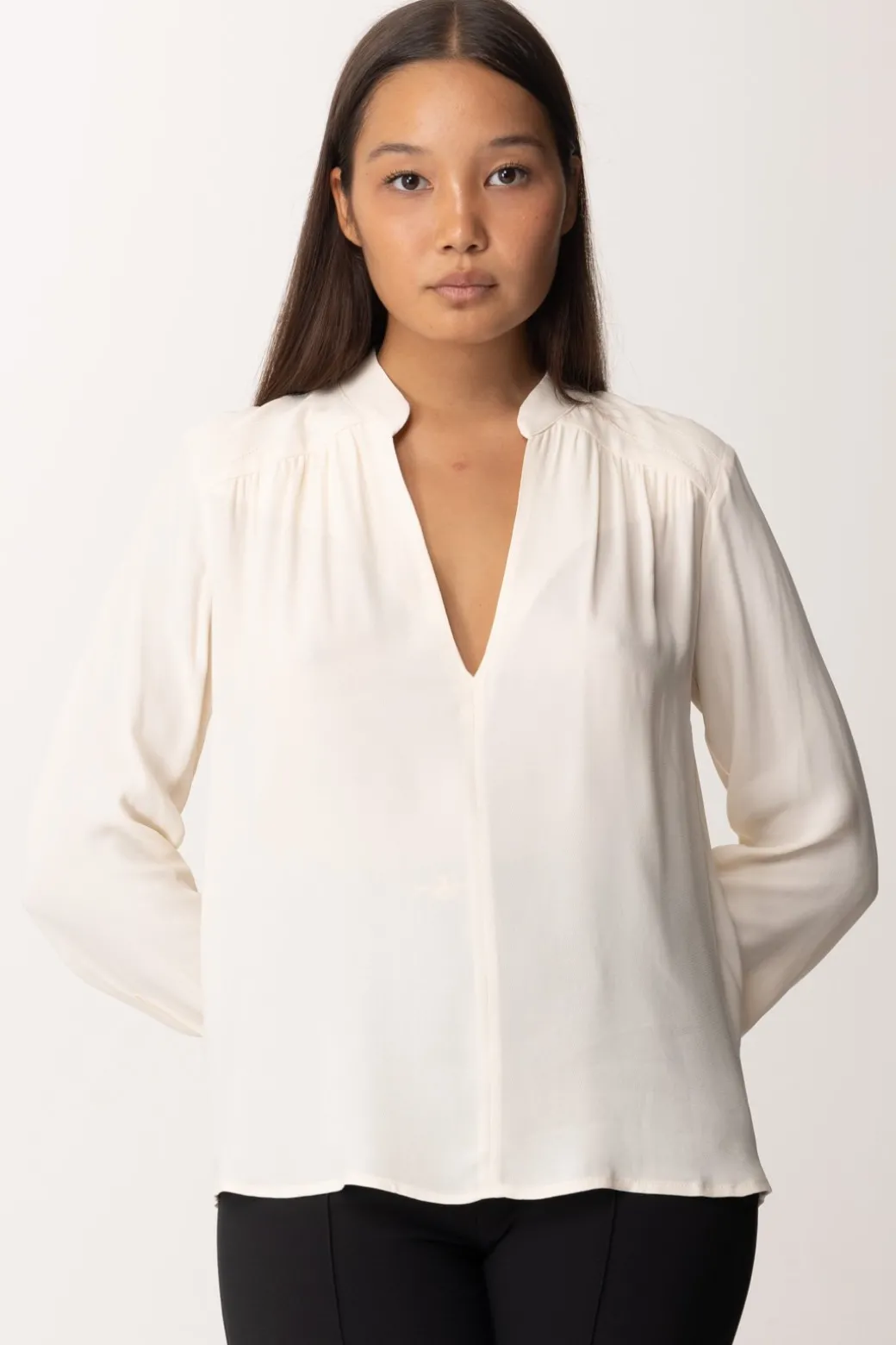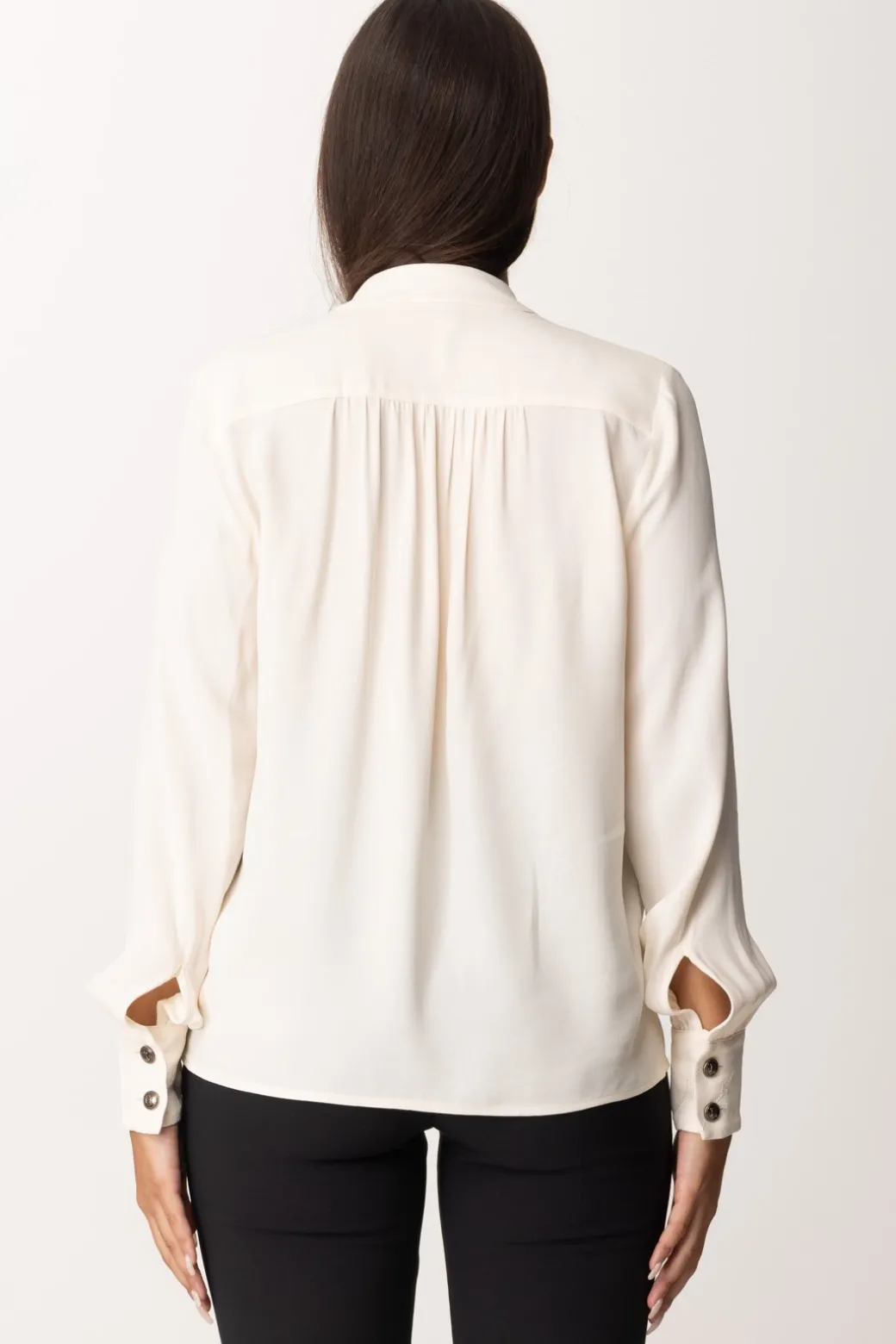 Un classico per i tuoi outfit, un vero passe-par-tout: una blusa Elisabetta Franchi in georgette caratterizzata dal classico fit ampio e morbido, profondo scllo a v e lievi arricciature al petto e ai polsini. La sua particolarità? Gli inserti su spalle e polsini con ricamo righe e logo in tono.