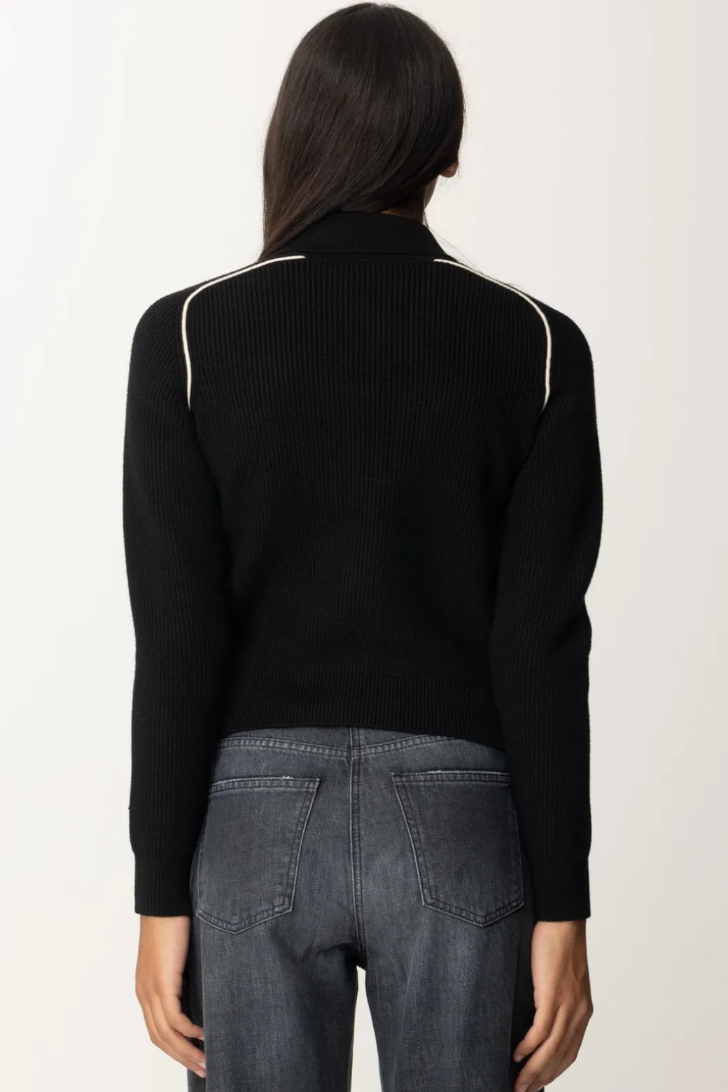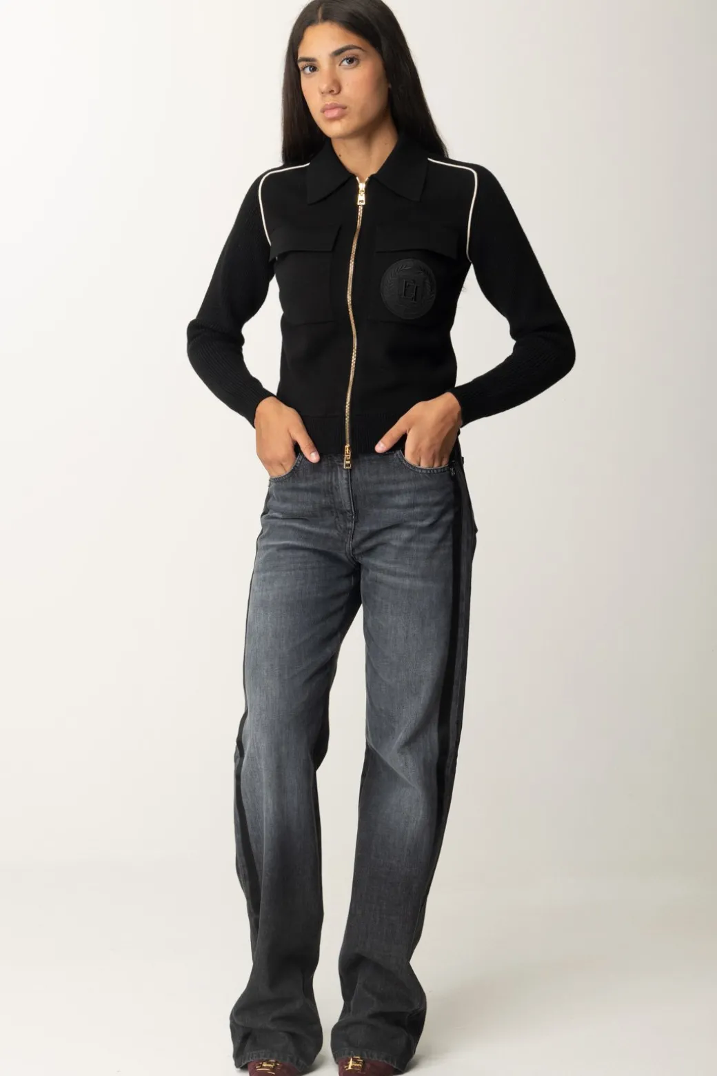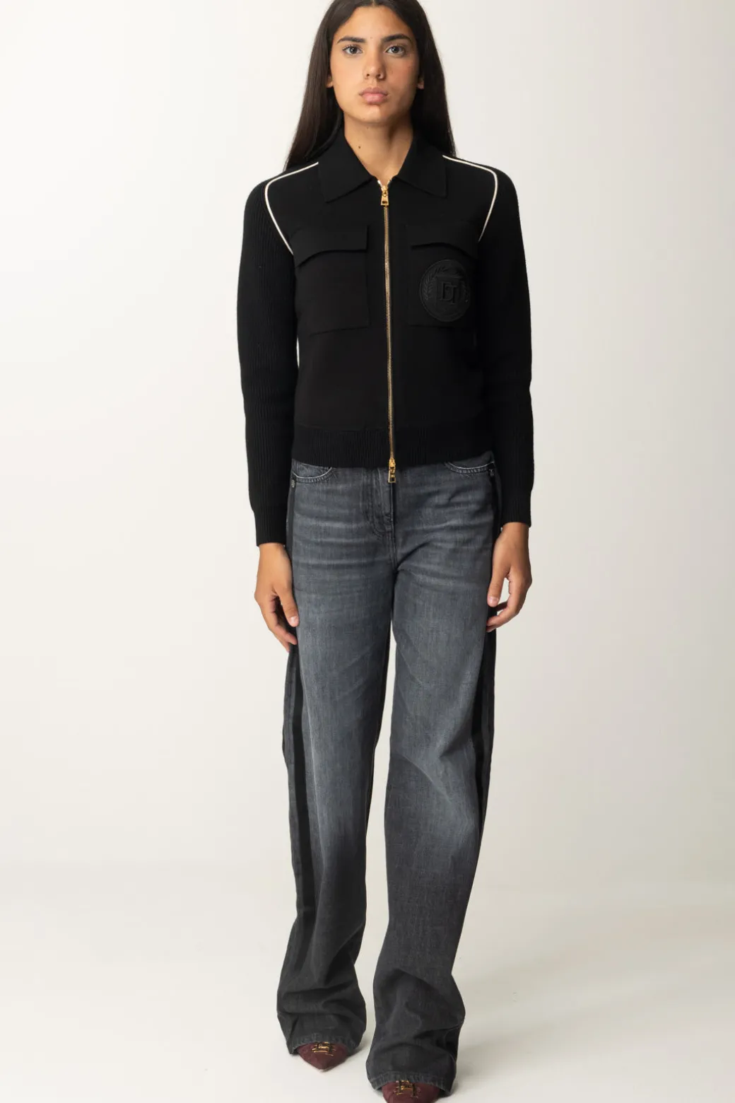 Maglia bomber Elisabetta Franchi per un look invernale sporty-chic che amerai indossare sia sopra jeans che pantaloni comodi. Caratterizzato da un colletto in viscosa punto pannocchia, maniche raglan e profili a contrasto. Il patch con logo ricamato impreziosisce una delle due tasche, mentre la zip centrale in oro aggiunge l’ultimo tocco di luce. Perfetto con jeans e sneakers per un look sportivo e di tendenza.