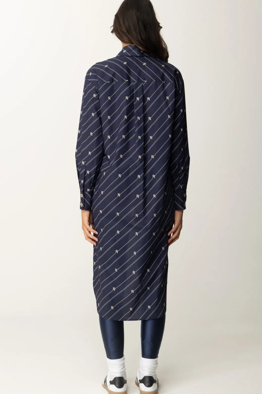 Un top che estremizza il concetto di asimmetria: basta vedere quanto questa camicia Elisabetta Franchi sia tanto più lunga sul retro! Pattern a righe diagonali e loghi e abbottonatura centrale nascosta, un capo originale che sarà perfetto con tutti i tuoi capi skinny o dal taglio mini.