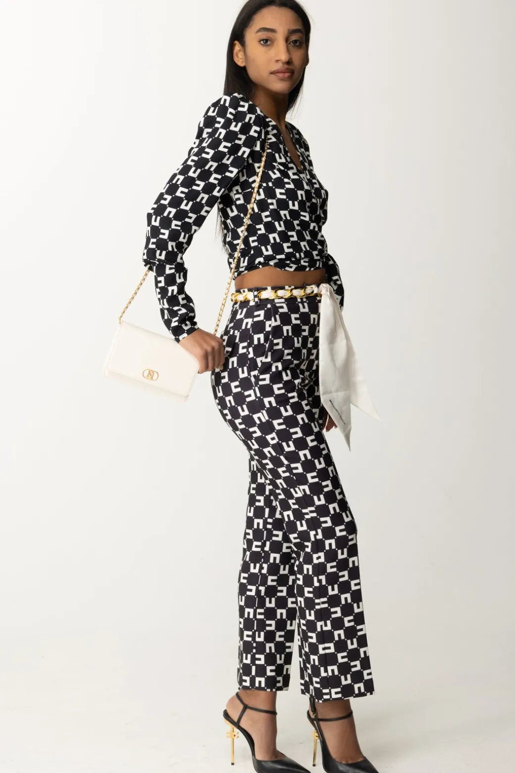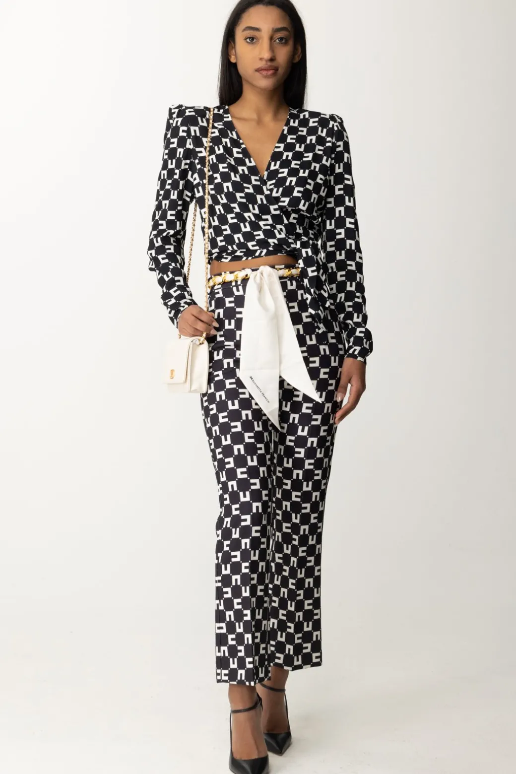 Si annoda sul fianco ma non per questo risulta meno chic: anzi, un’eleganza frizzantina caratterizza questa camicia Elisabetta Franchi, caratterizzata anche dalla stampa CC che ne rende ancora più inconfondibile lo stile. Divertiti ad abbinarla ai tuoi bottom a vita alta: dai denim palazzo a elegantissime gonne a tubo, non ti deluderà in nessun caso.