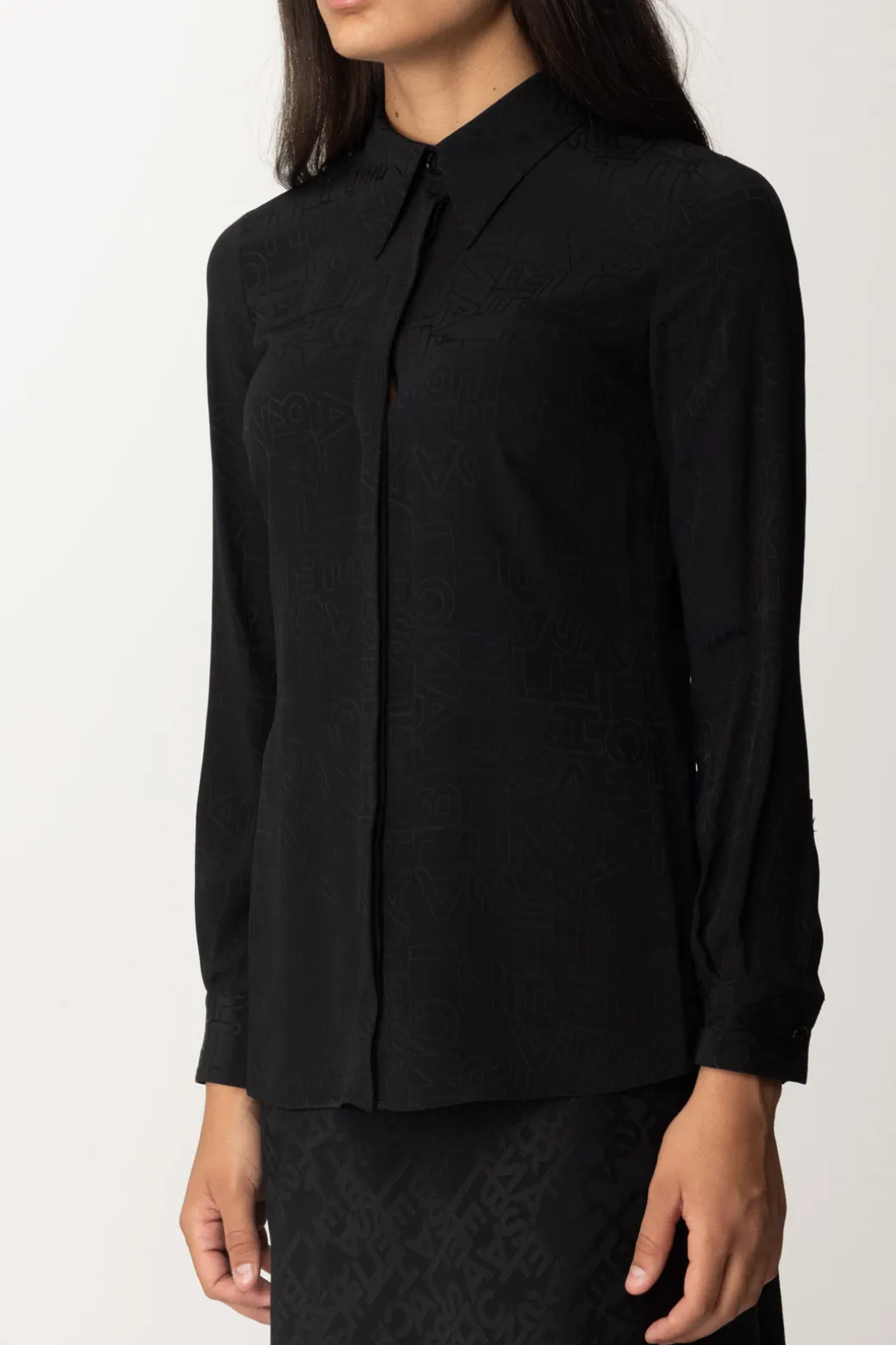 Camicia Elisabetta Franchi tra i nuovi iconic della stagione: realizzata in misto seta, il carattere passe-par-tout del capo è arricchito dalla stampa lettering all over, che aggiunge stile e riconoscibilità del brand in modo originale e non vistoso. Perfetta con qualsiasi bottom della collezione: dal denim a pantalone classico, metti alla prova la sua versatilità.