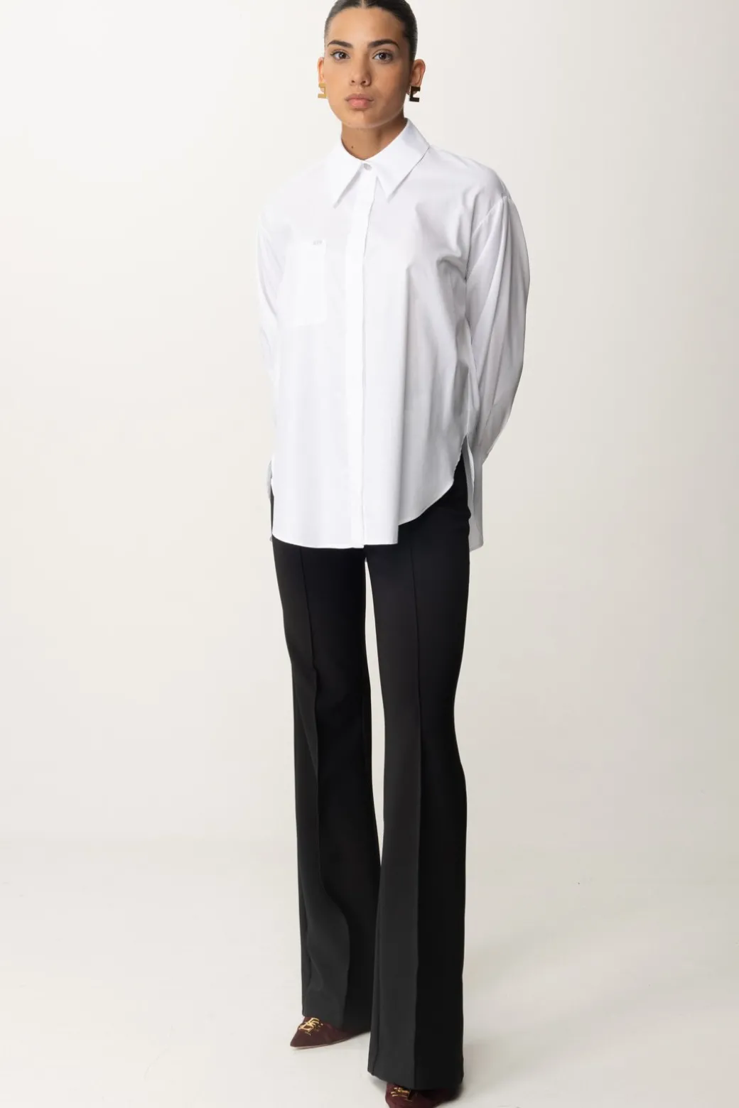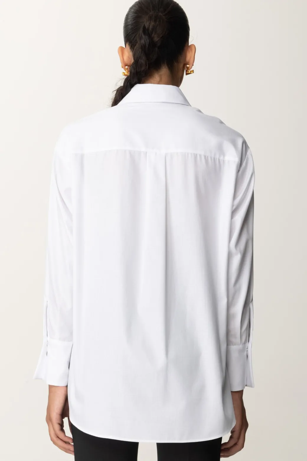 Raffinata e contemporanea camicia Elisabetta Franchi dal fit leggermente over che renderà glamour ogni tuo outfit con il suo tocco di stile: le iniziali della designer a contrasto sui polsini, completati da bottoncino logato in metallo. Perfetta con denim, con gonne a fantasia, con pantaloni eleganti: perfetta sempre!