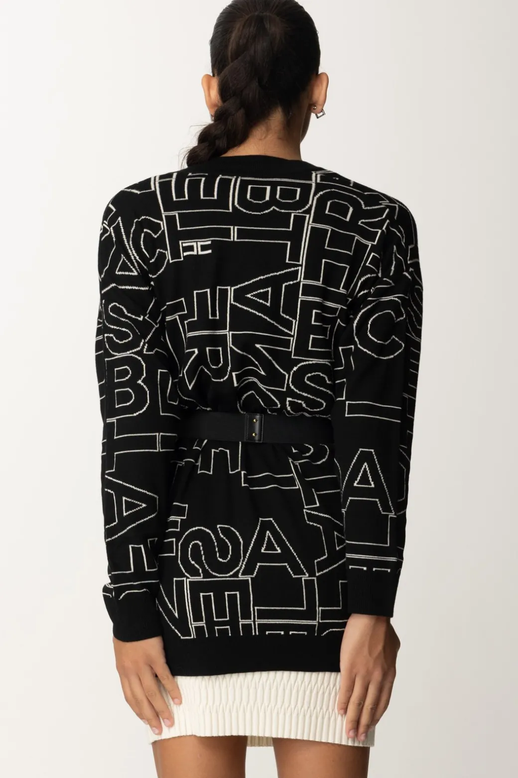 Questo cardigan Elisabetta Franchi conquista i cuori di tutte le amanti della moda e dello stile cozy-chic! Realizzato in misto lana, impreziosito da lettering all over a contrasto e illuminato dalla cintura in vita con placca logata in oro che richiama la chiusura con bottoni. Confortevole e stiloso, abbinalo a jeans skinny e stivaletti.