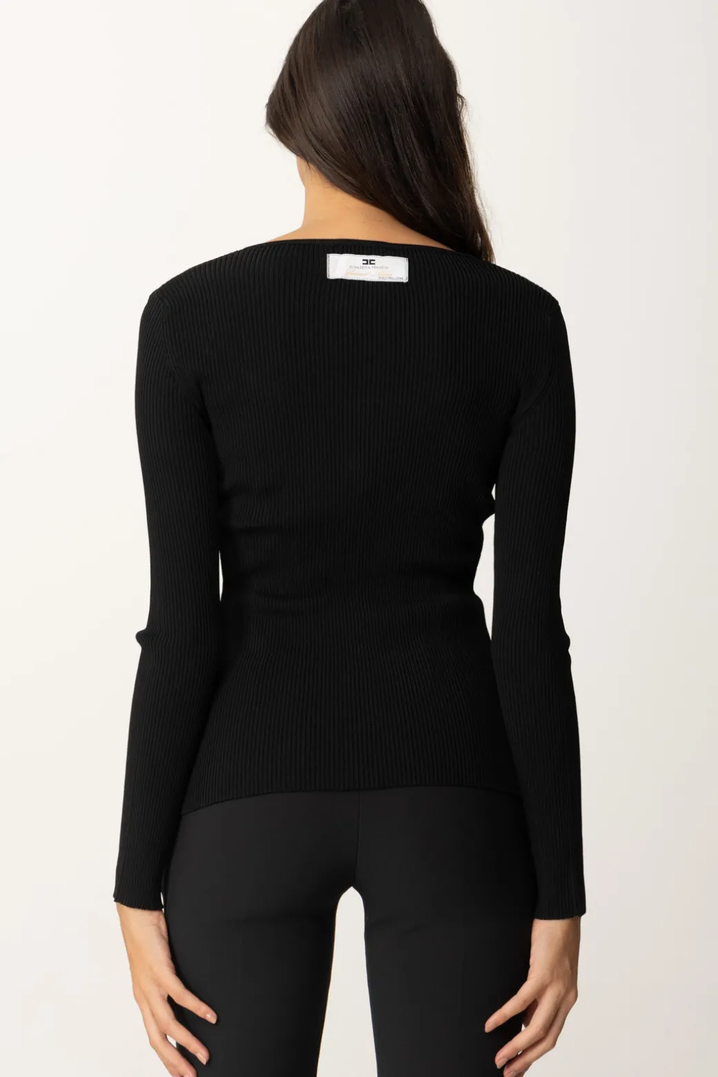 Un cardigan Elisabetta Franchi in misto viscosa, con scollo a madonna e un design semplice e raffinato, con dettagli a costine e bottoni dorati. Perfetto per look casual o da ufficio, è un capo versatile che si abbina facilmente a gonne o pantaloni.