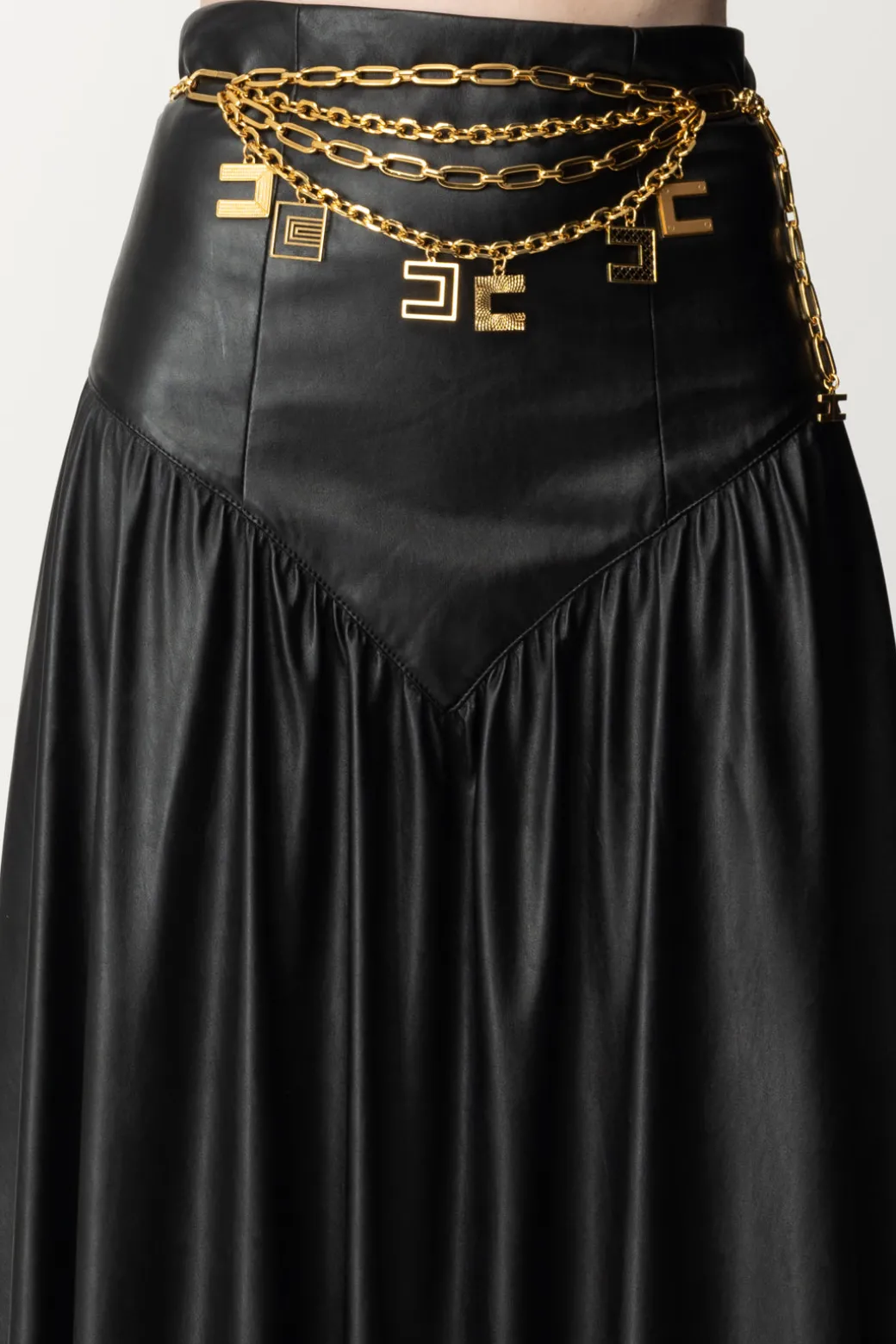 Niente di meglio di una cintura Elisabetta Franchi per arricchire il tuo look! Realizzata in luminoso metallo gold, con multi chain di varie dimensioni e loghi caratterizzati da design diversi che arricchiscono con un tocco glamour. Sopra abiti e gonne farai un figurone!