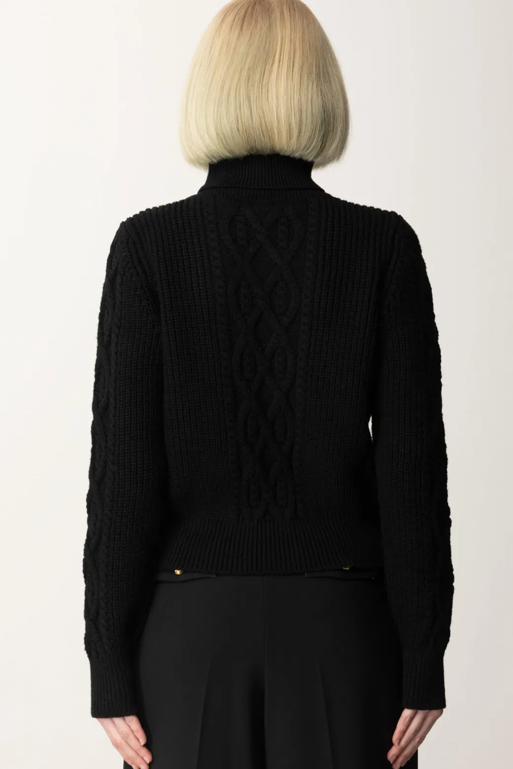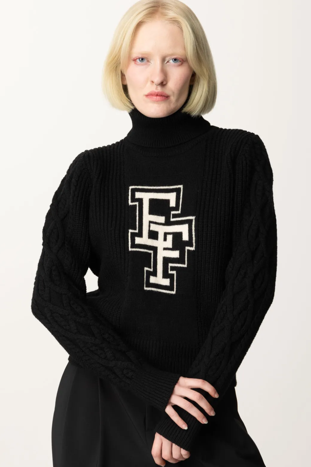 Morbidezza e stile al tuo servizio con questo dolcevita Elisabetta Franchi in lana con logo EF sul petto in stile college e maniche lunghe con motivo a trecce che si ripete sul retro. Taglio corto che si presta molto bene a bottom a vita alta, un capo confortevole e chic per i più diversi outfit di stagione.