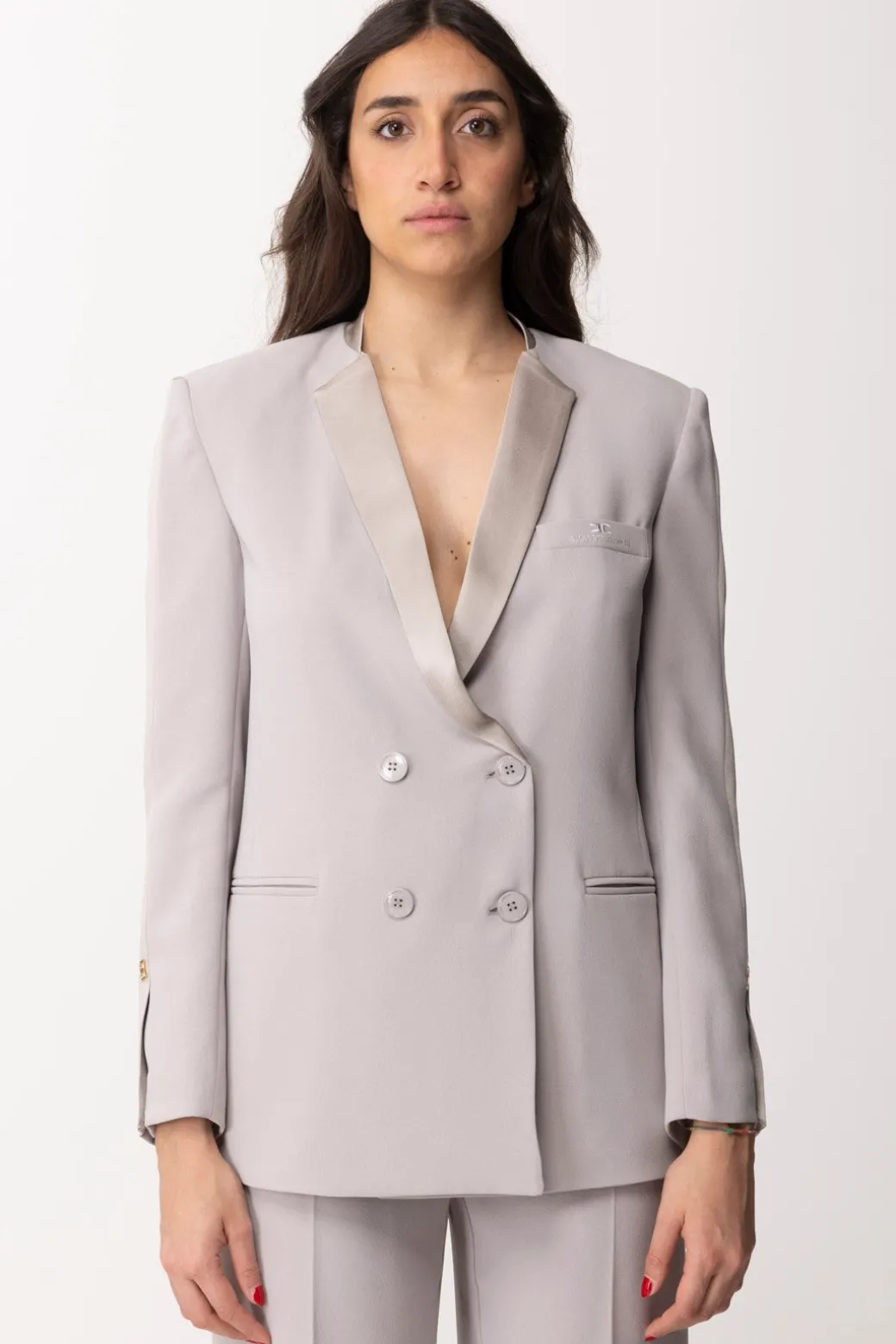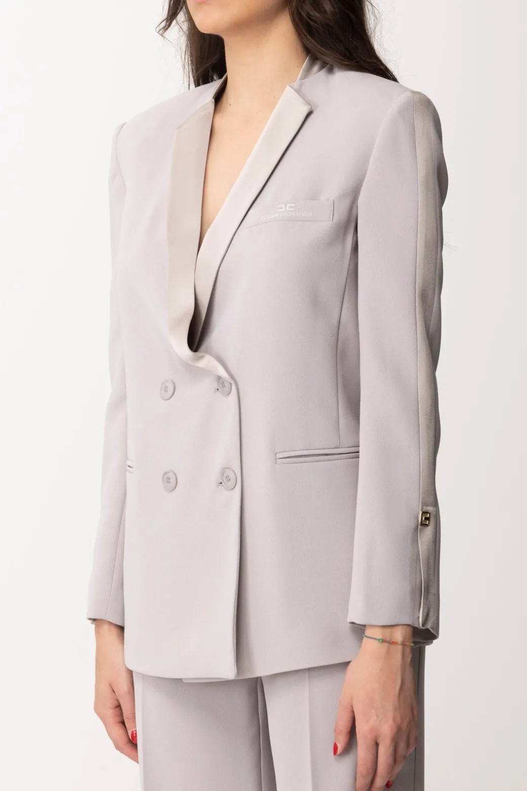 Eleganza lineare illuminata dal colletto in raso per questa giacca Elisabetta Franchi, con design dritto e chiusura doppiopetto. Apprezzala abbinata ai tuoi bottom più eleganti, ma anche meno usuali, come tubini e mini dress a cui aggiungere un tocco classy. Tasca a filetto sul petto con ricamo a filo e maniche lunghe aperte da spacchetti al polsino.