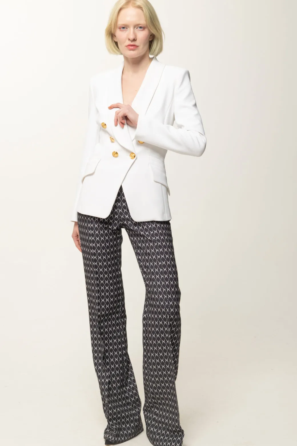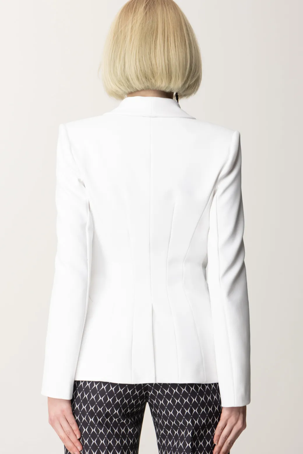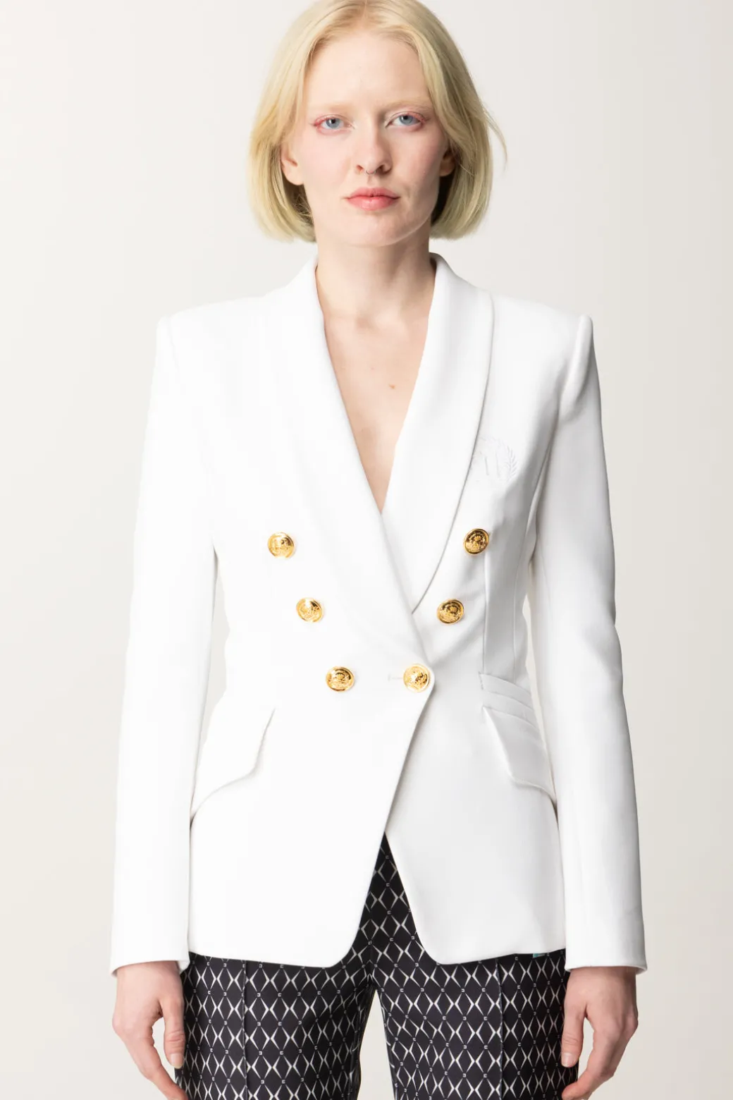Giacca Elisabetta Franchi doppiopetto realizzata in doppio crêpe e impreziosita da bottoni gold, tasche frontali con patta e uno stemma logato ricamato su un lato. Un classico intramontabile che esprime eleganza e raffinatezza.