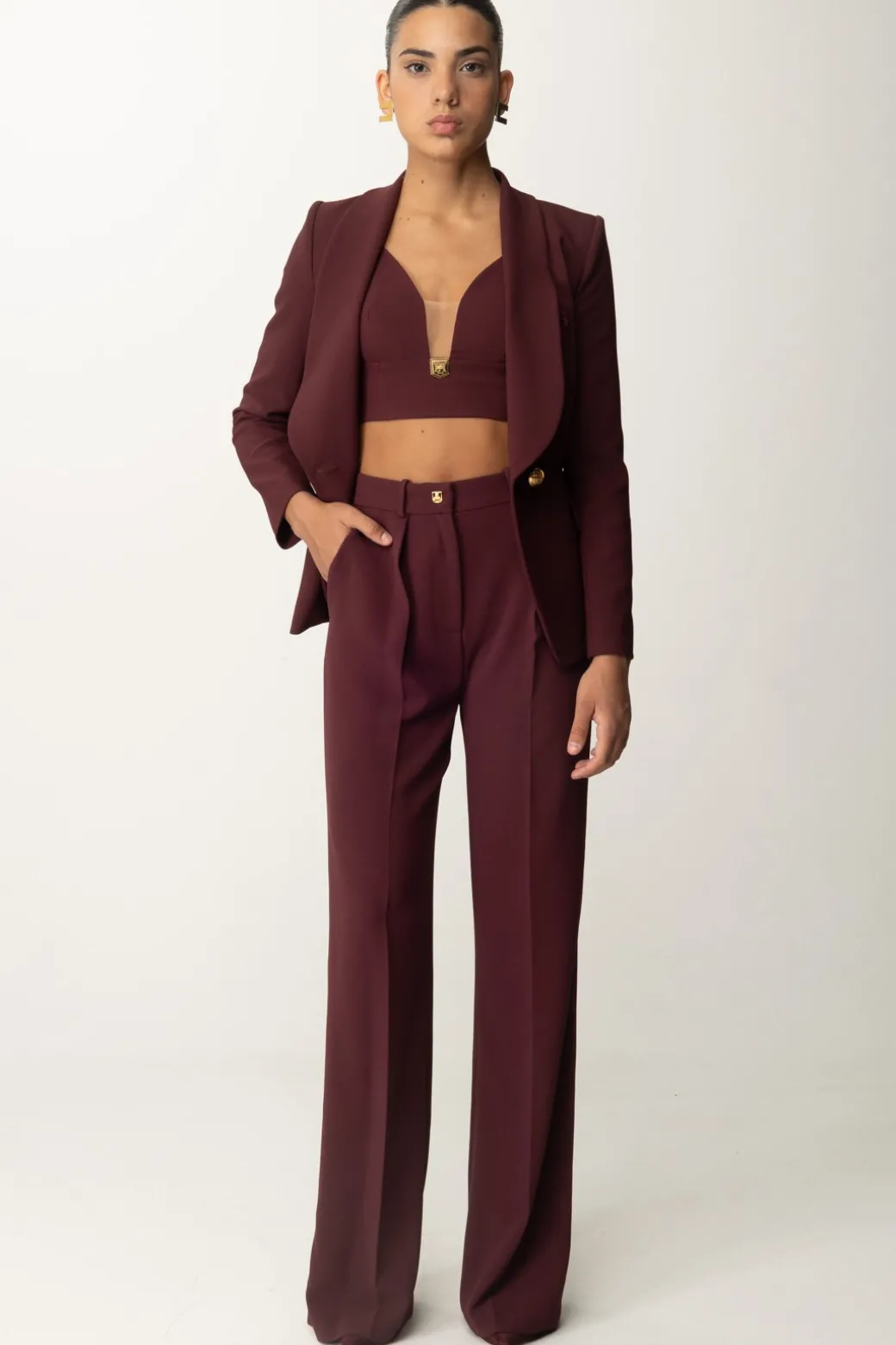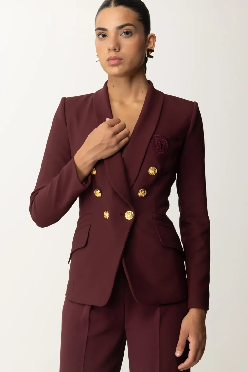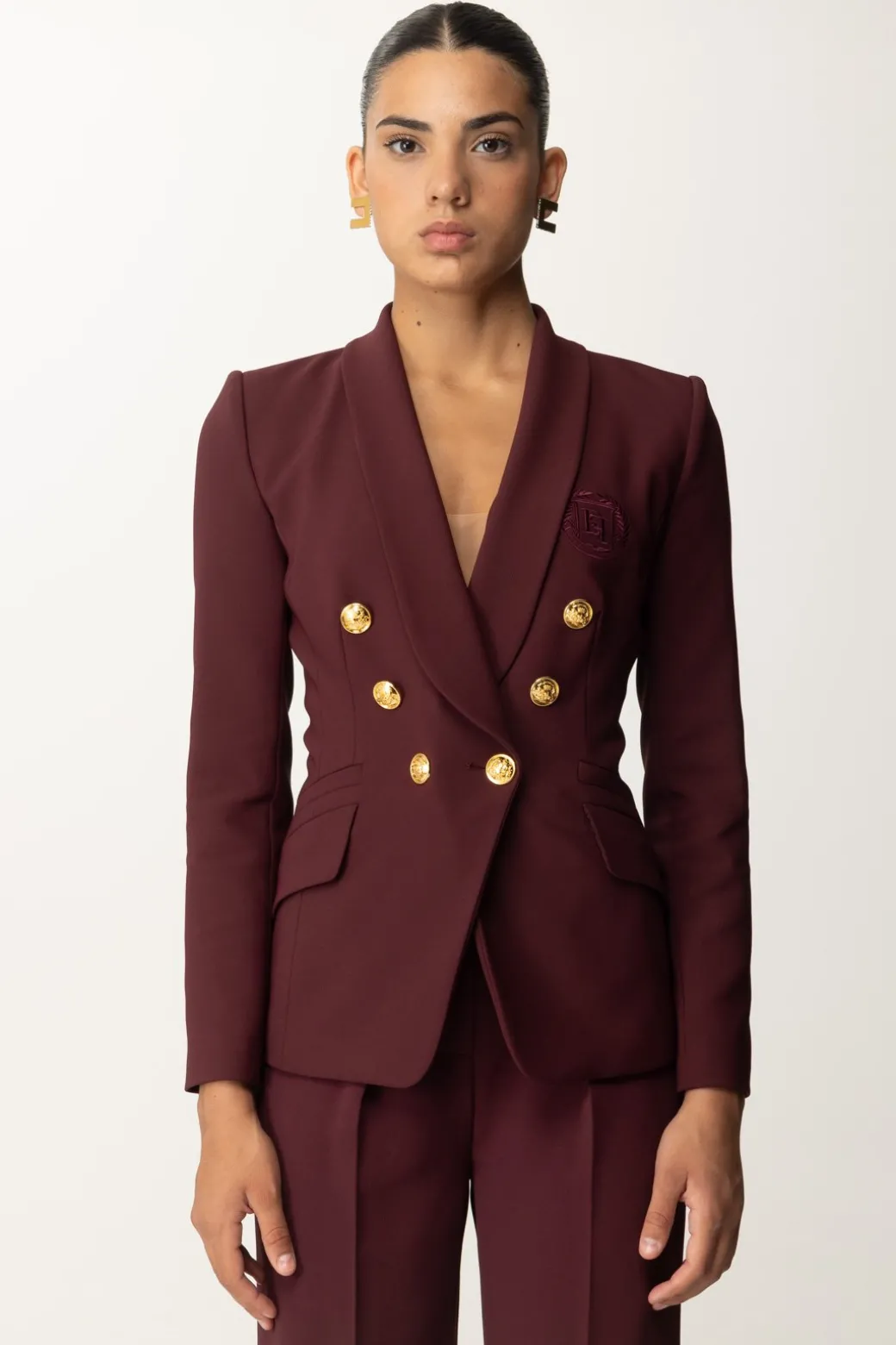Giacca Elisabetta Franchi doppiopetto realizzata in doppio crêpe e impreziosita da bottoni gold, tasche frontali con patta e uno stemma logato ricamato su un lato. Un classico intramontabile che esprime eleganza e raffinatezza.
