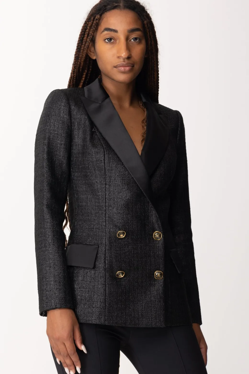Elisabetta Franchi Giacca Doppiopetto In Tweed LaminatoNERO
