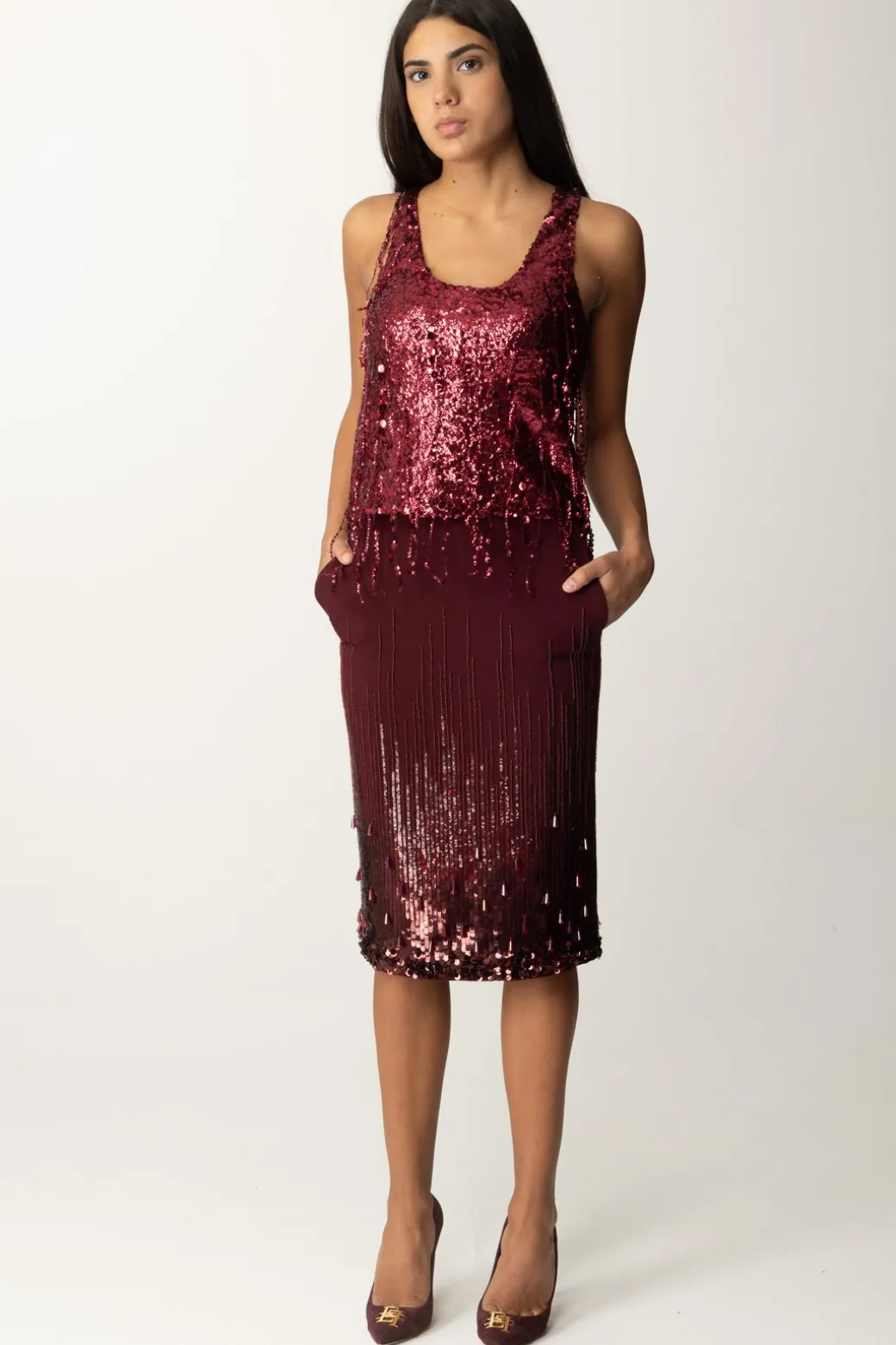 Vivace ed elegante gonna Elisabetta Franchi dal taglio midi, realizzata in crepe ed impreziosita da un ricamo in pailletes e canottiglie in tinta. Mood festaiolo ma anche super chic: saranno i tuoi abbinamenti a fare la differenza, con un capo così esclusivo!