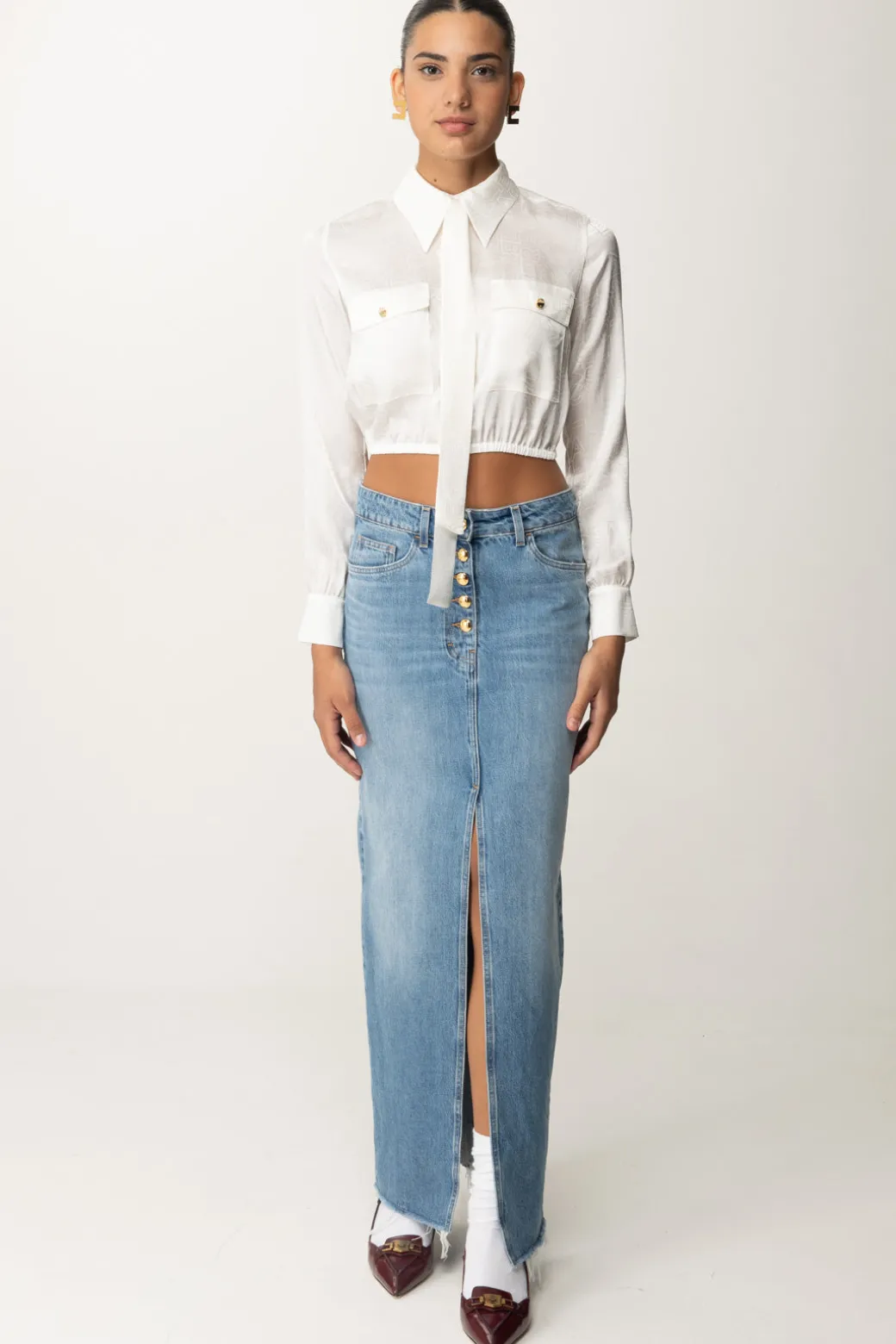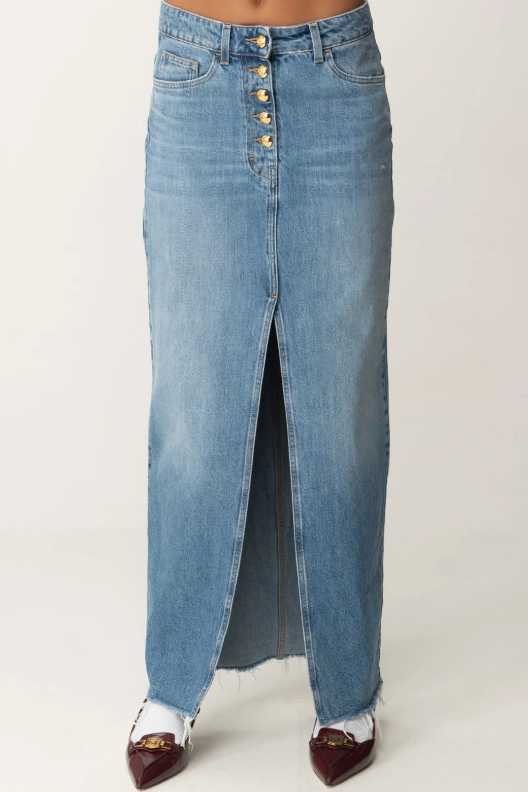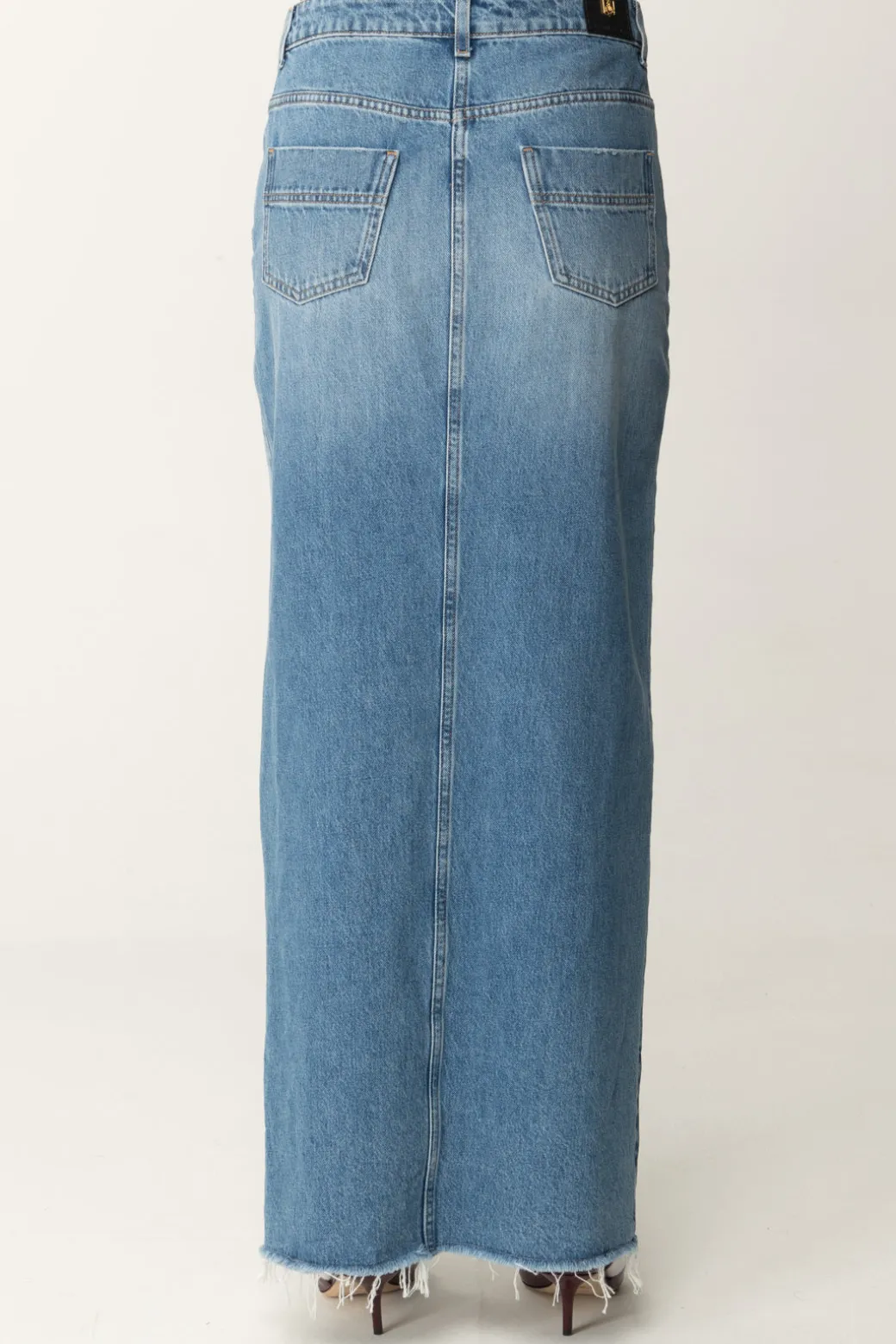 Una gonna Elisabetta Franchi per vere fashion icon: stretta come un tubino ma lunga fino alle caviglie, realizzata in denim con taglio a vivo e profondo spacco frontale, una sfida per i tuoi abbinamenti che non vorrai perderti l’opportunità di cogliere! Trova il tuo modo di indossare questo capo super femminile: da casual a glam, la challenge è aperta!