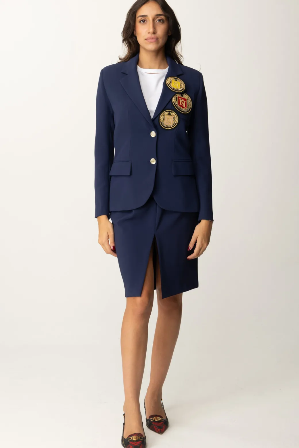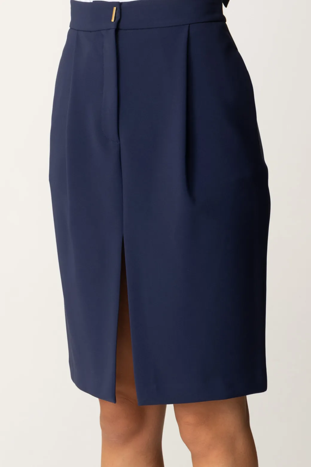 Semplicità e classe, il fascino di questa gonna midi Elisabetta Franchi ti conquisterà a primo sguardo. Il modello a tubino con spacco frontale aggiunge un tocco moderno a una silhouette classica, mentre le pinces frontali aggiungono struttura. Abbinala a un blazer aderente e tacchi eleganti per un look potente e raffinato da ufficio.