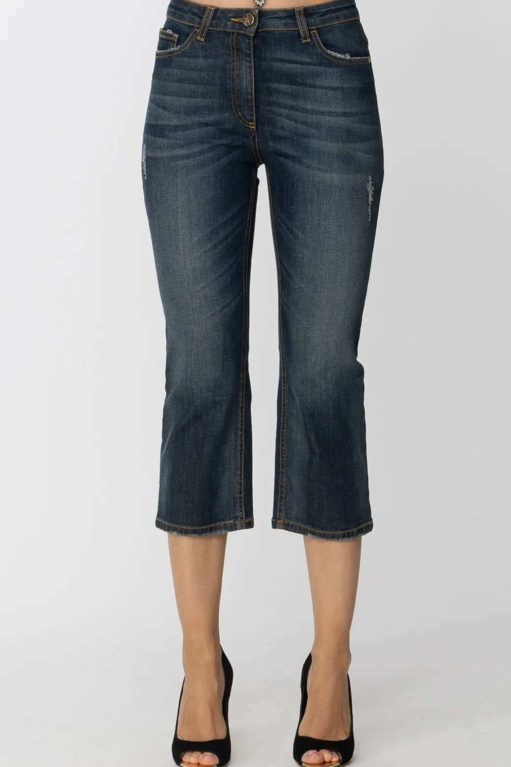 Elisabetta Franchi Jeans Crop ScuriUSED BLUE