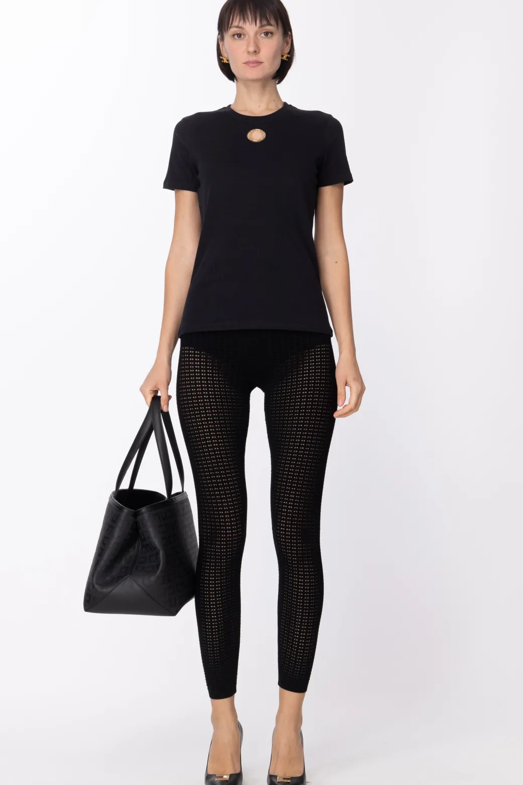 Leggings Elisabetta Franchi, versatili e adatti a molteplici outfit di stagione. Realizzati in viscosa a punto rete, con fascia in vita in tono di colore. Abbinali ad una maglia e ad un paio di sneakers del brand per un look casual ma in perfetto stile EF!