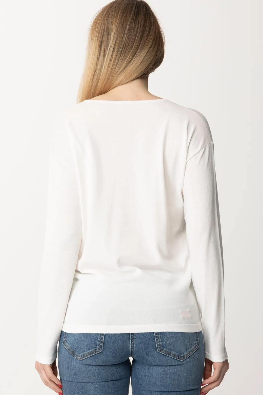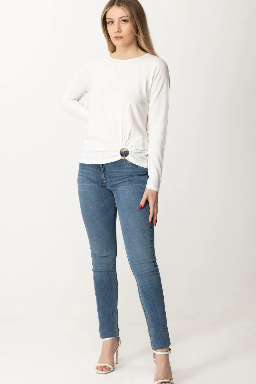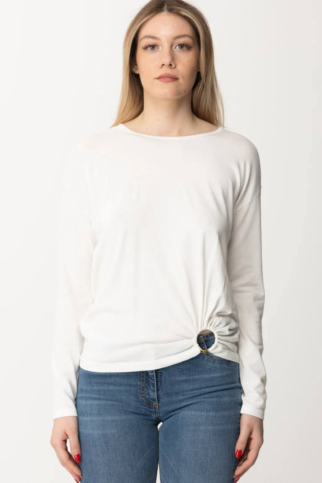 Maglia di Elisabetta Franchi con anello e dettaglio gioiello sul fianco, che cattura l’occhio e aggiunge un tocco unico al capo. Da abbianare ad un jeans per un look sempre alla moda!