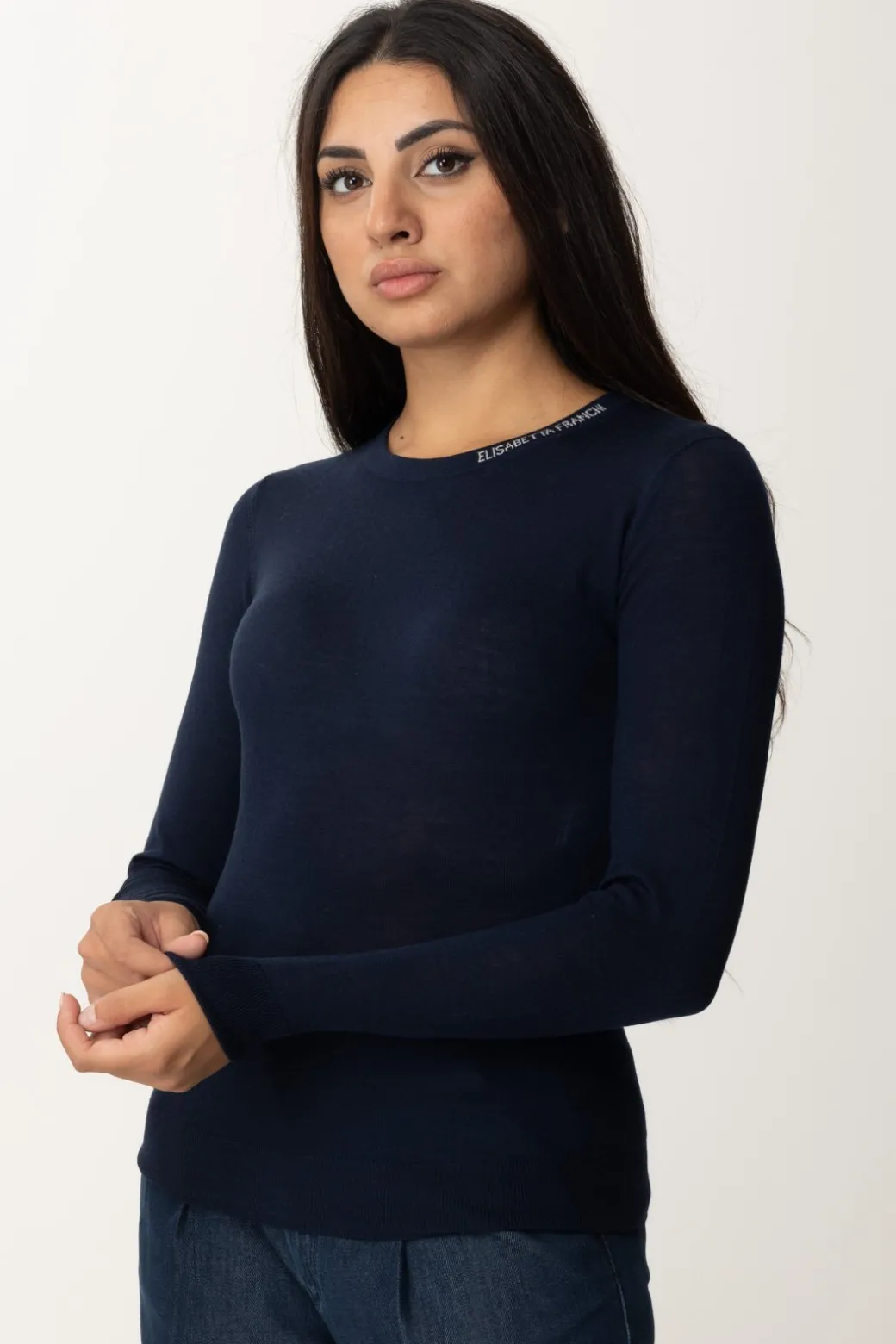 Basic e versatile, ma quanta raffinatezza: questa maglia Elisabetta Franchi è un vero tocco di grazia per i tuoi outfit. Tessuto leggero realizzato in lana merino, aderisce alle forme ed è completata dal logo lettering del brand a contrasto sul colletto. Perfetta da indossare in tantissimi contesti,: dal più casual, come in foto, ai più chic, da pantalone classico e scarpa con tacco.