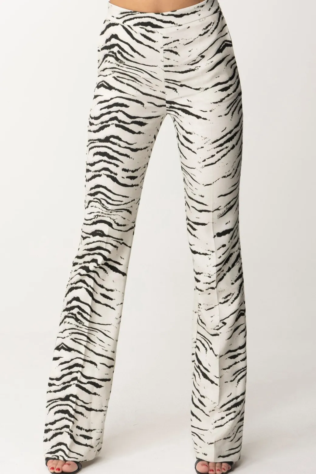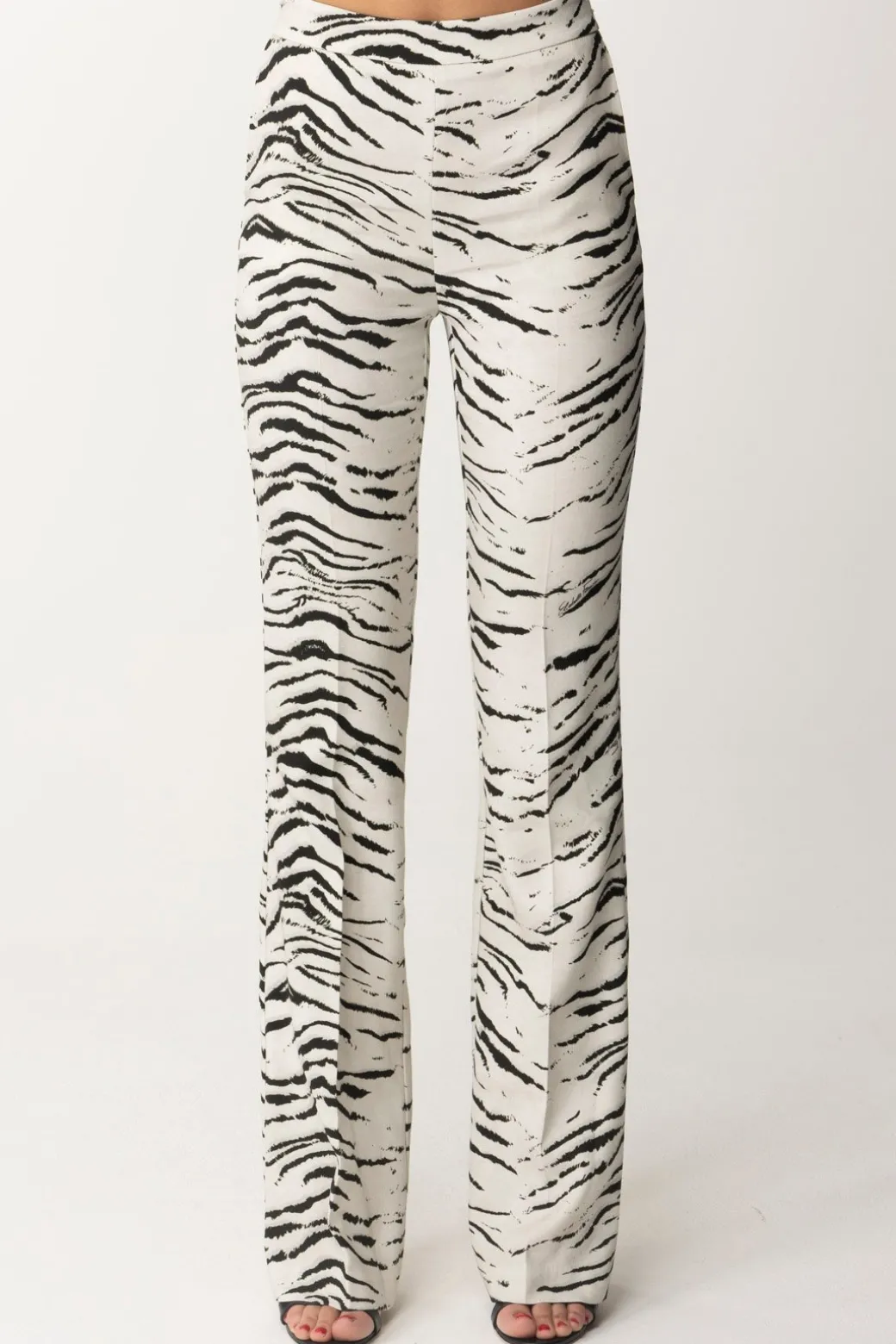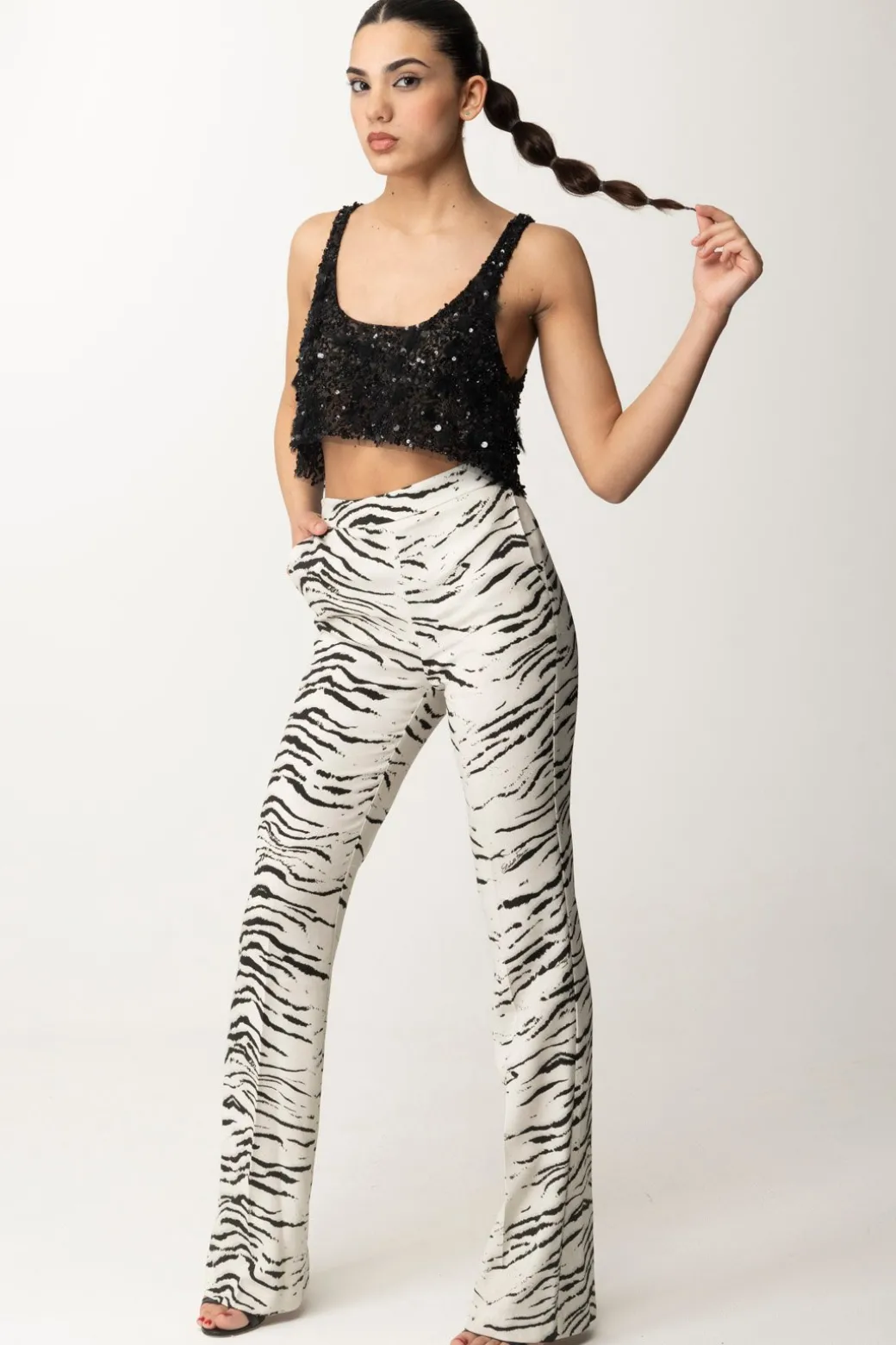 Questi eleganti pantaloni dritti Elisabetta Franchi dal motivo animalier, includono delle pratiche tasche alla francese e una zip invisibile sul fianco, offrendo una vestibilità snella e comoda. Ideali per un look che non passa inosservato, combinano alla perfezione fascino e funzionalità.