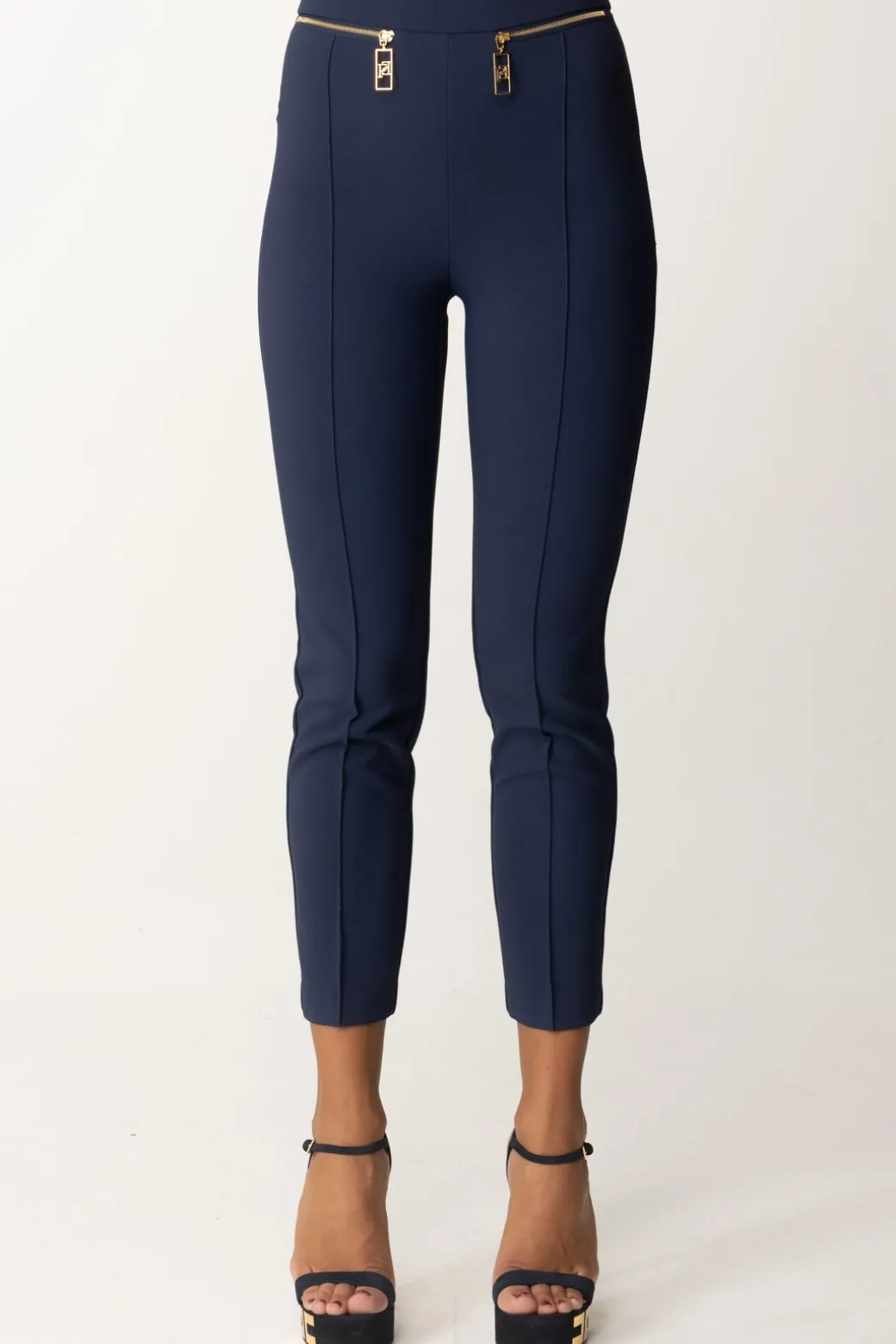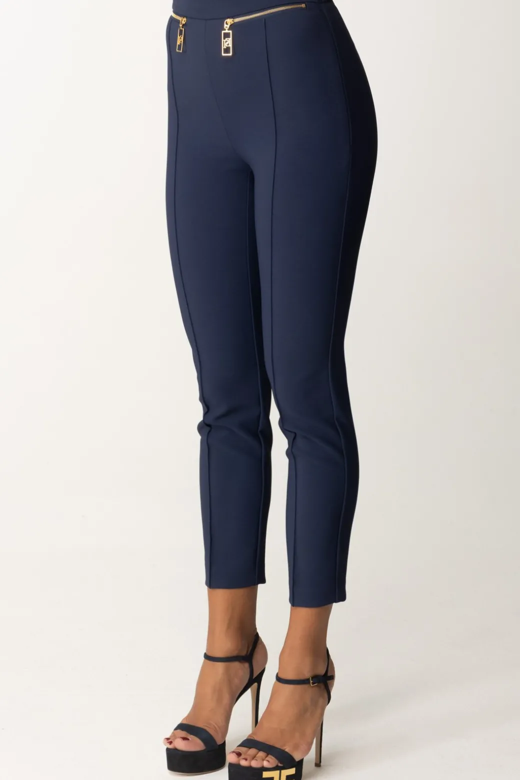 Impeccabili come ogni capo del brand, questi pantaloni Elisabetta Franchi sono un bel compromesso tra glamour ed eleganza, con un taglio dritto classico con piping lunga la gamba ed il tocco contemporaneo delle zip al punto vita con tiretto logato, trait-d’union con altri capi della collezione. Belli di giorno, belli di sere, belli sempre!