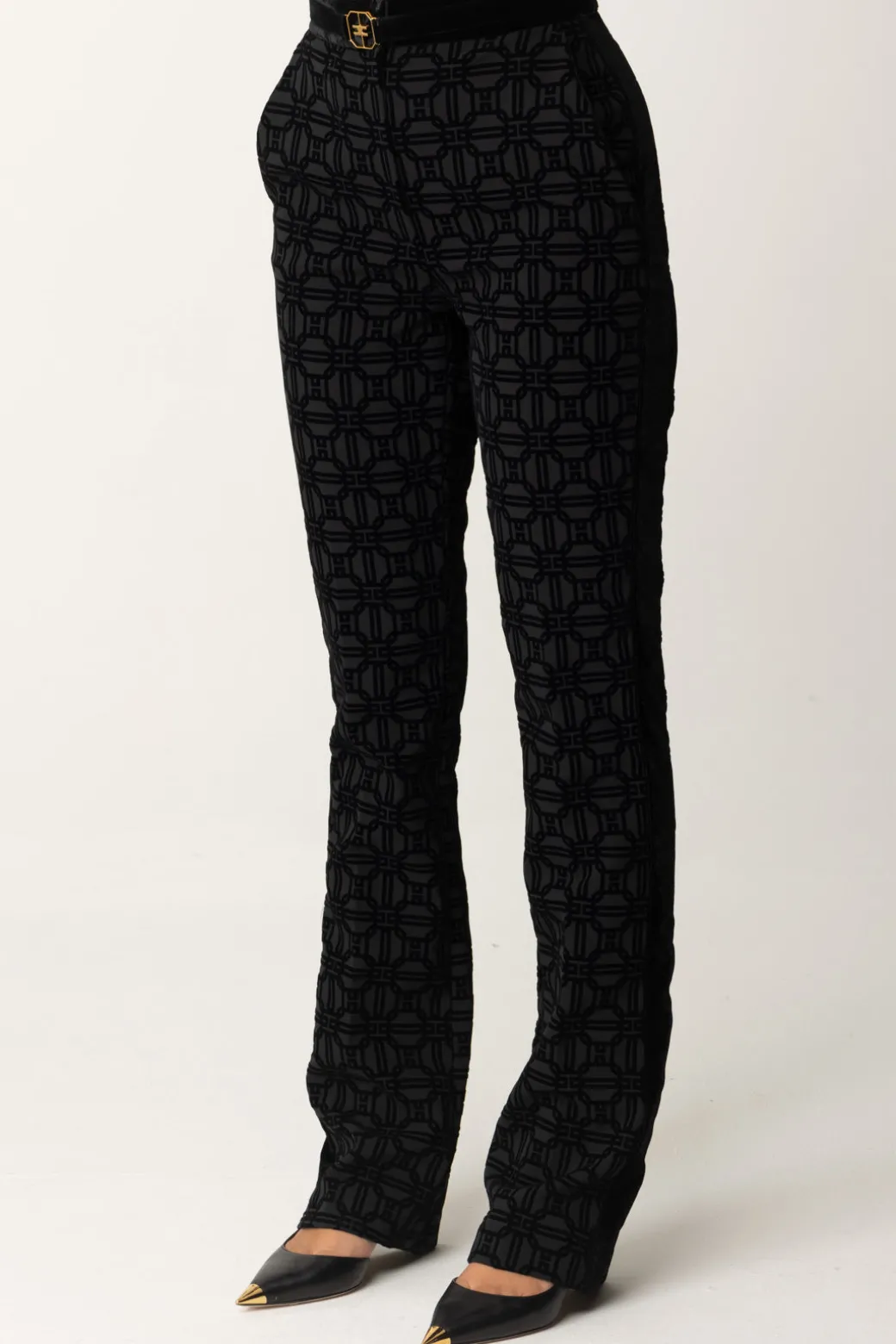 Pantaloni Elisabetta Franchi che cavalcano uno dei trend di stagione: la stampa flock all over, ipnotica e stilosa, completata in questo caso da un taglio dritto della gamba,e una cintura in tinta al punto vita. Indossali con un top tono tu tono per un look sofisticato e che catturi l’attenzione, o spezza completamente per un outfit ancorap iù catchy.