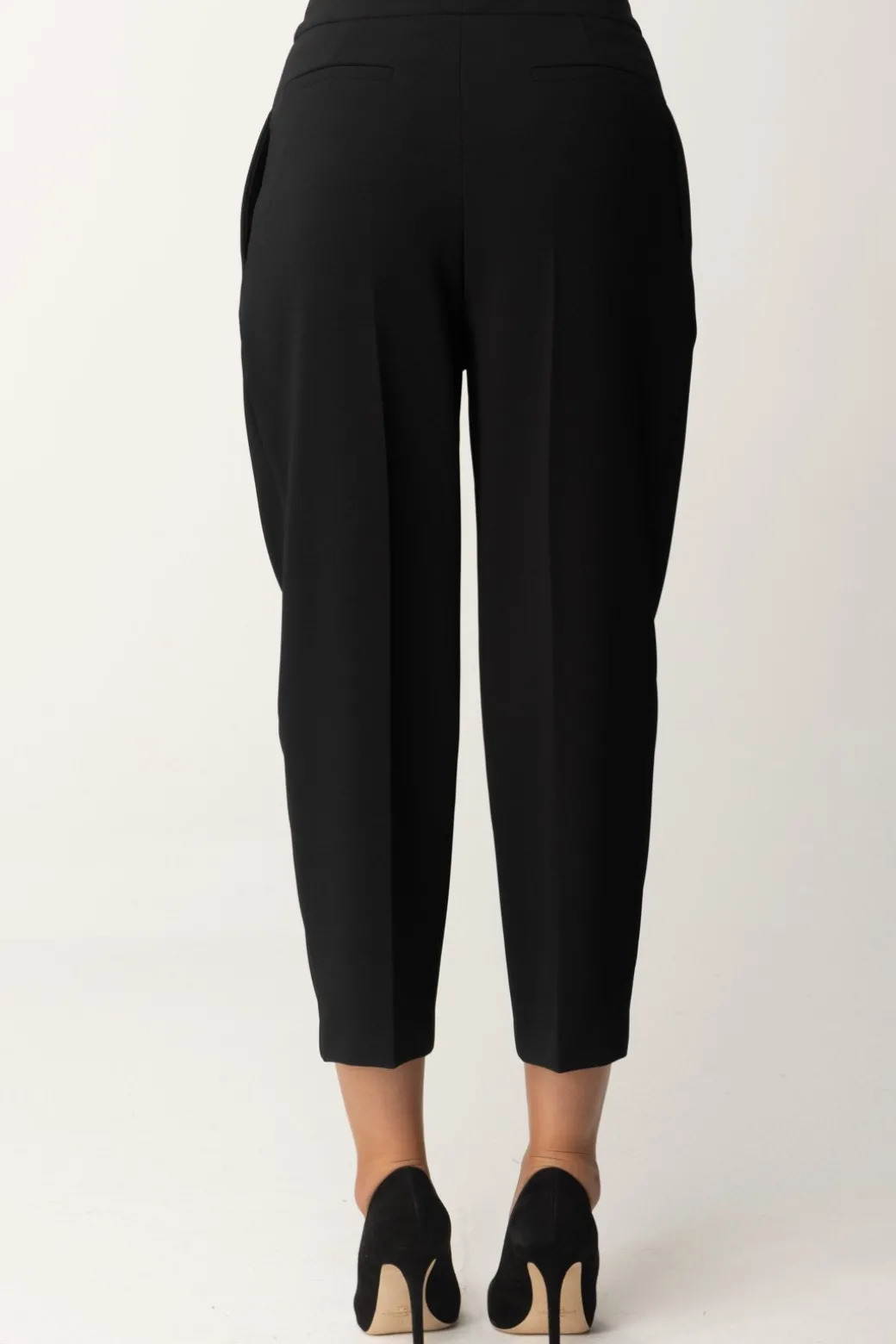 Pantaloni Elisabetta Franchi che rendono super attuale la loro eleganza connaturata, realizzati in crepe stretch con pinces frontali e stiro piega. A renderli attuali è il taglio crop: un espediente che ti farà sbizzarrire nei tuoi abbinamenti: rendili casual con un anficio o un tronchetto, o super chic con tacchi e slingback.