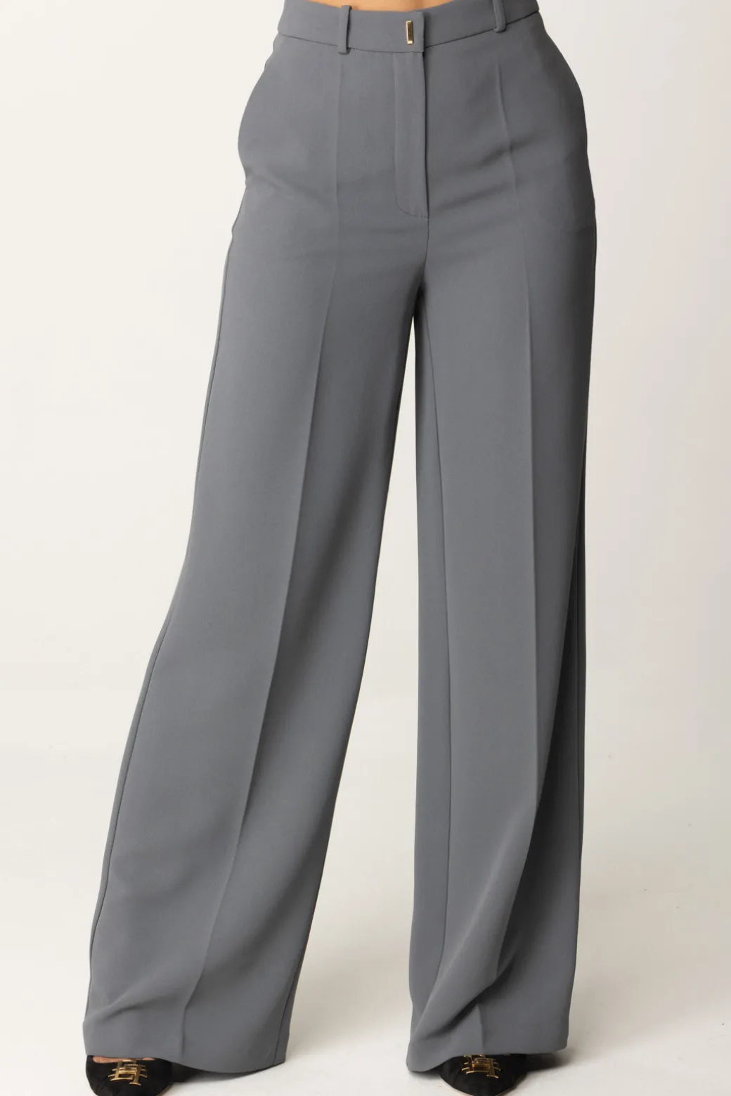 Eleganza pret-a-porter con questi pantaloni Elisabetta Franchi taglio dritto, in crepe fermo leggero e dal design basico e versatile a gamba larga. Riconoscibili nello stile, ma non solo: la placca oro applicata al punto vita riproduce il logo della maison, un piccolo vezzo di stile per i tuoi look.