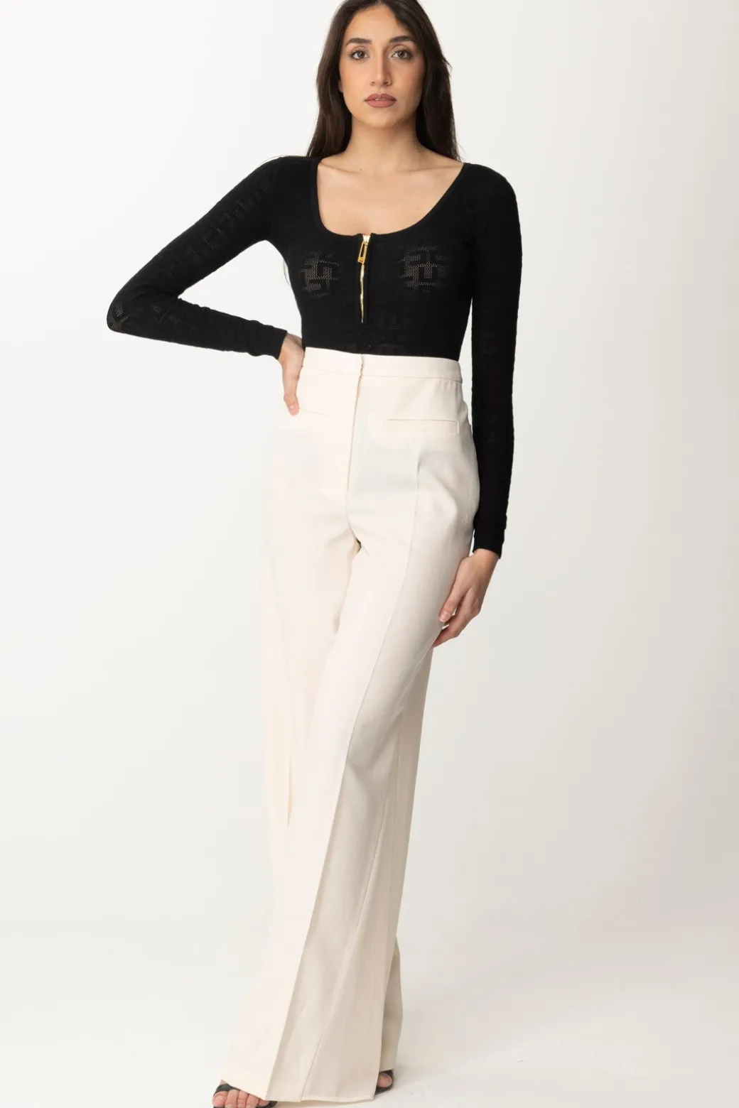 Pantaloni Elisabetta Franchi eleganti in modo semplice e versatile. La gamba dritta, da valorizzare con un bel tacco, dona monumentalità alla silhouette, valorizzata anche dalla vita alta e fasciante che chiama a sé top aderenti o crop. Tasche a filetto sul fronte e tasche a toppa sul retro, piccoli dettagli a fare la differenza e aggiungere carattere ai tuoi look.