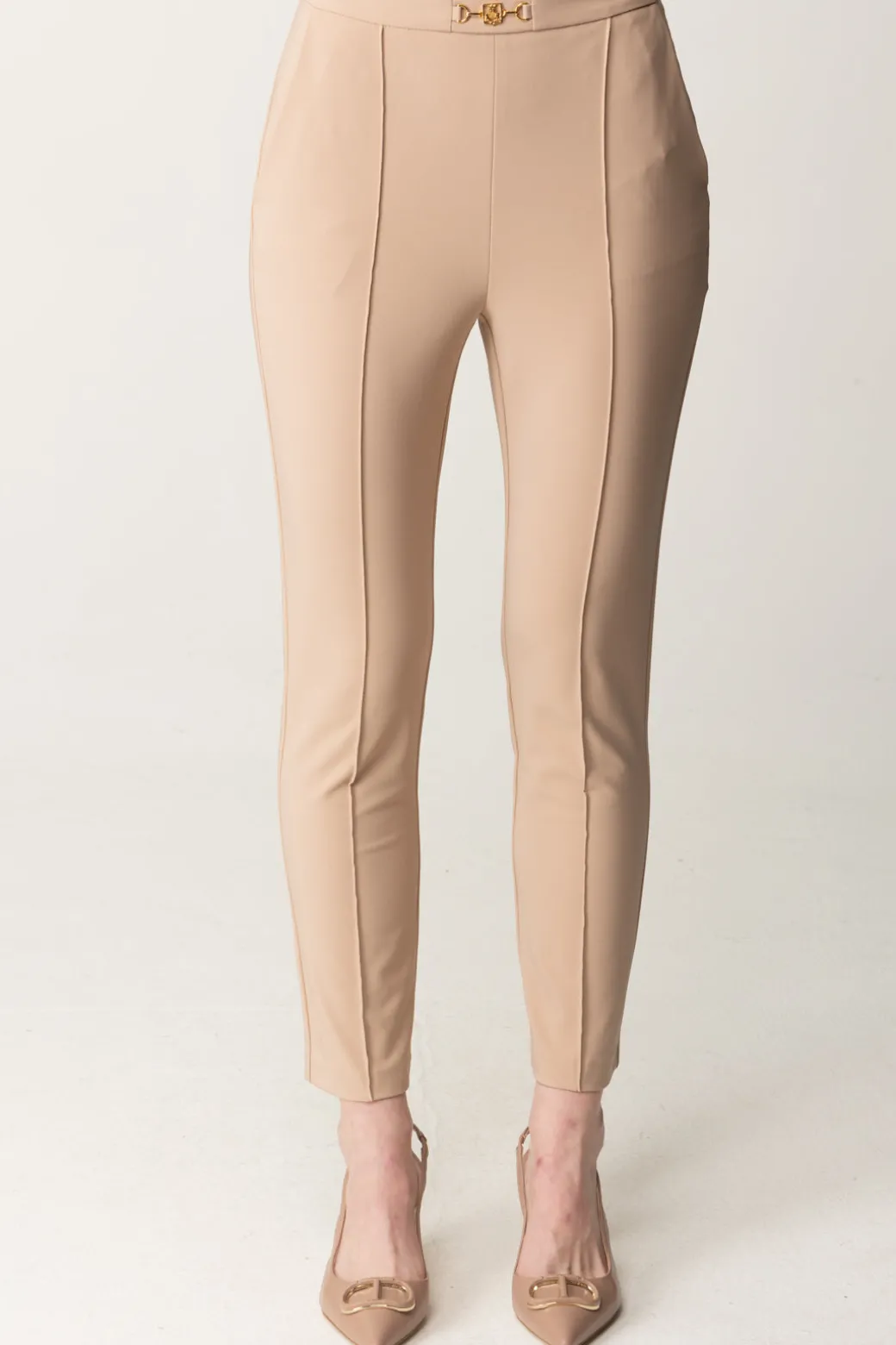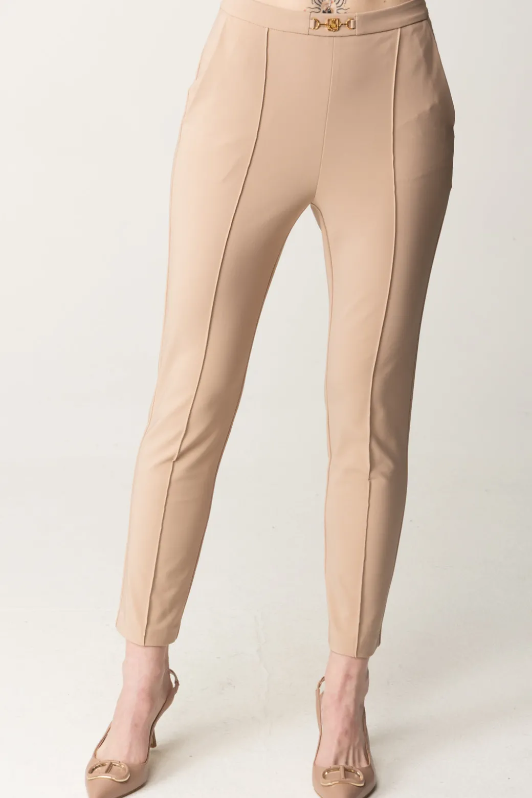 L’essenza del moderno e funzionale, questi pantaloni Elisabetta Franchi hanno un fit dritto alla caviglia e sono realizzati in tessuto tecnico bielastico, hanno tasche alla francese e fascione adornato da un morsetto logo in metallo dorato. Perfetti per un look business casual.