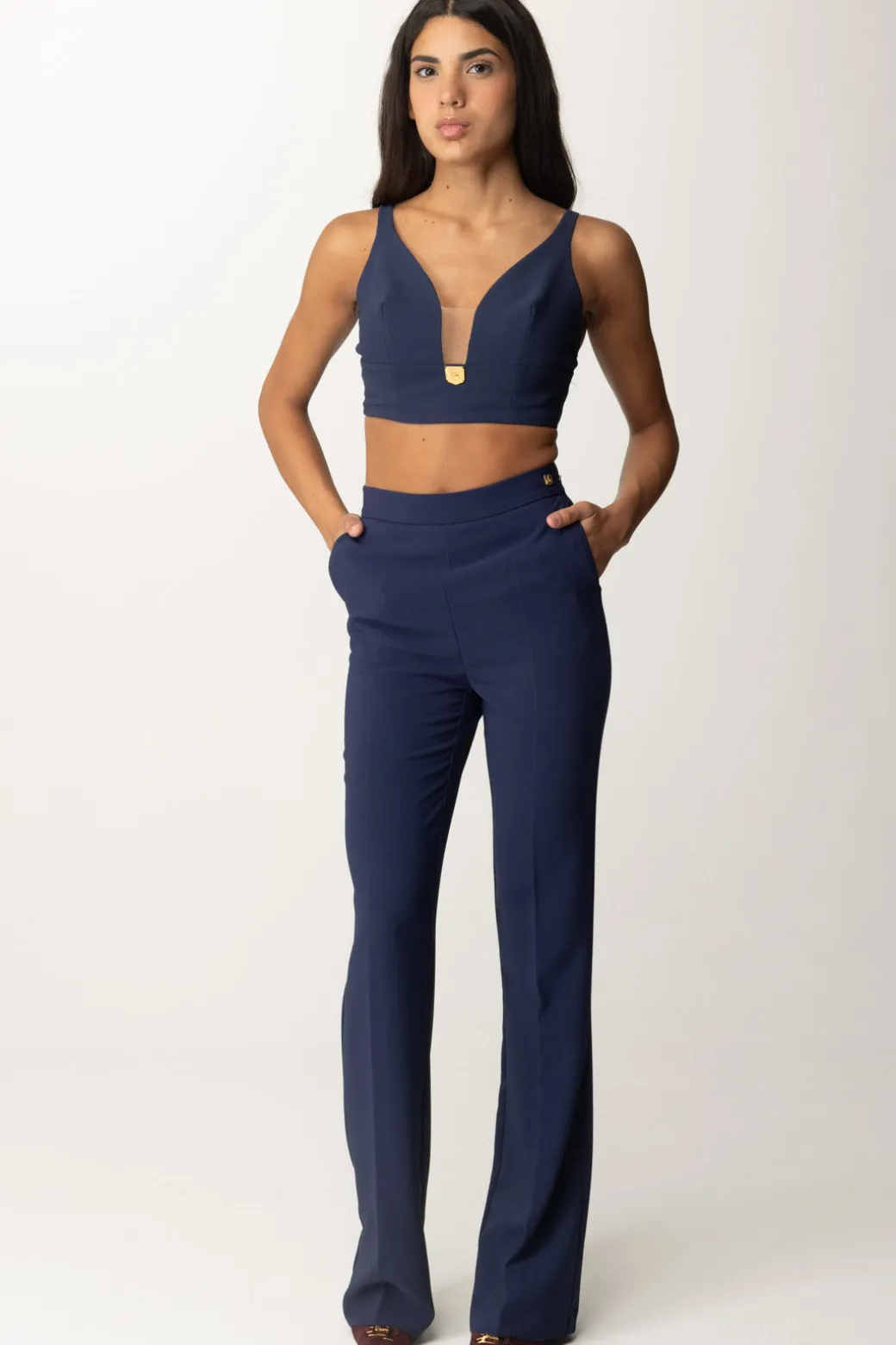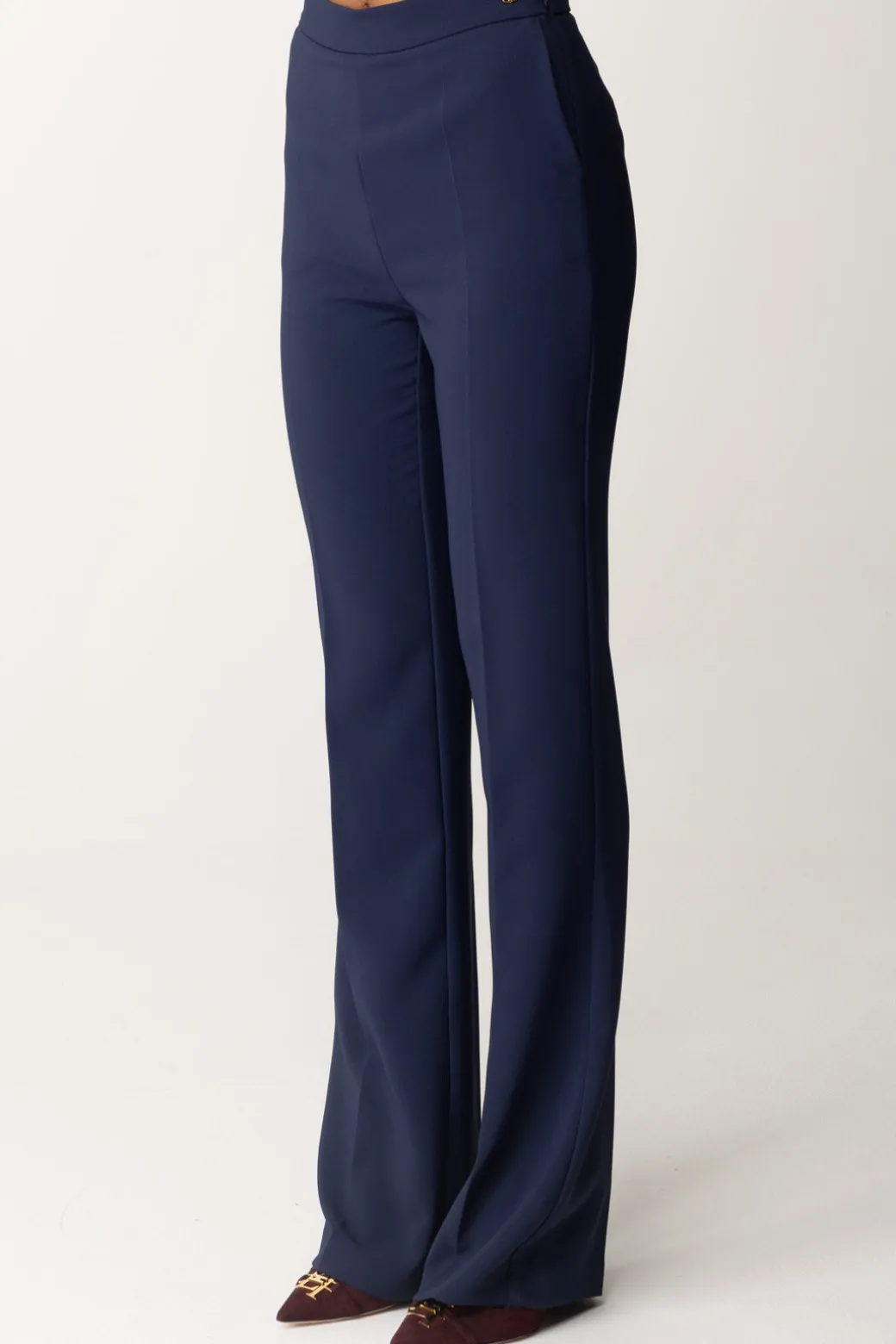 Pantaloni Elisabetta Franchi classici, dalla linea leggermente svasata al fond oe con vita alta caratterizzata da placchetta logo gold. Un capo pensato per i tuoi outfit più chic, da valorizare con tacco che dia slancio alla gamba flare e un top che lasci a vista il dettaglio luminoso in vita.