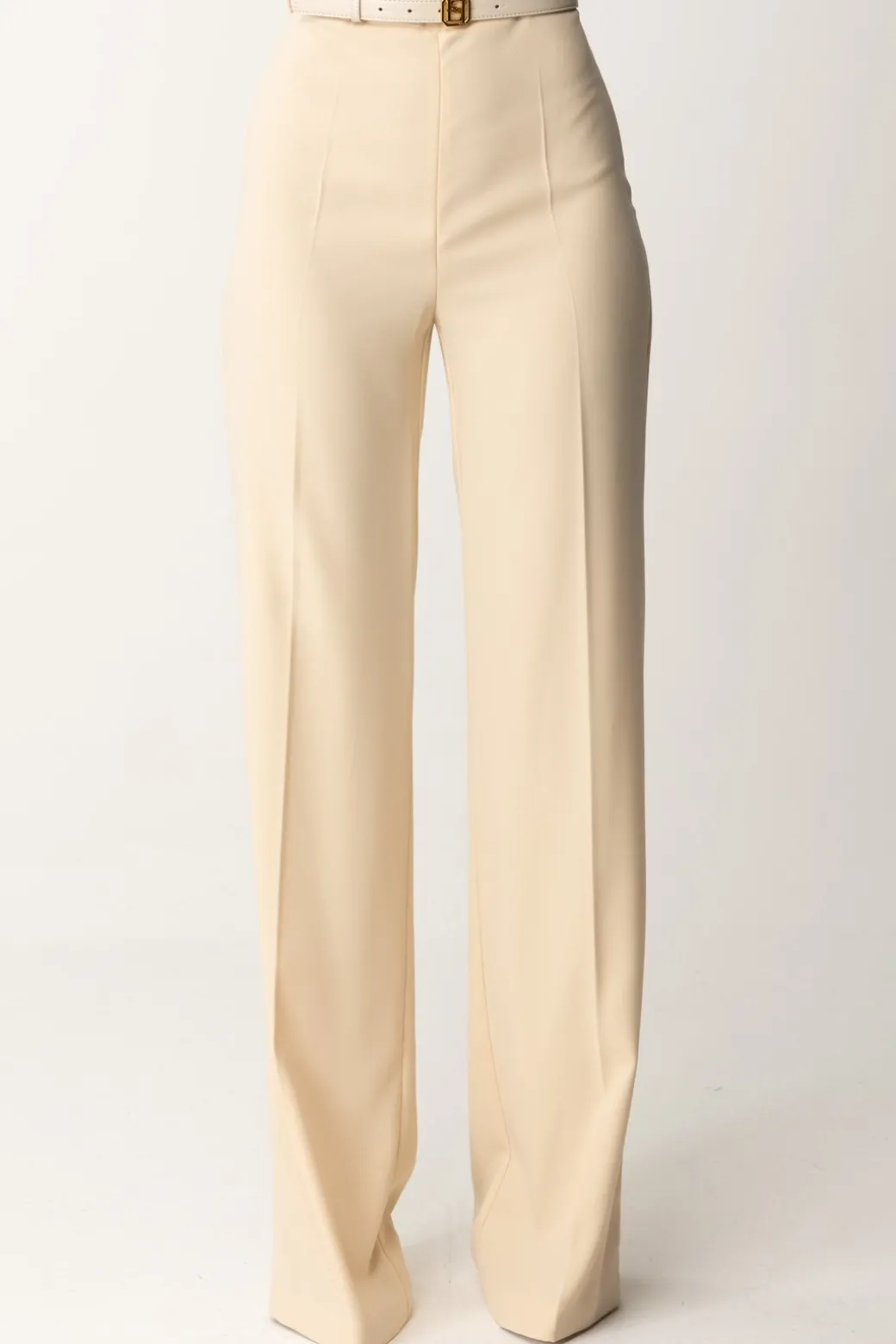 Eleganza e comfort si incontrano in questi Pantaloni palazzo Elisabetta Franchi, realizzati in raso con stiro piega, presentano un dettaglio luminoso sul punto vita che viene esaltato da una cintura con fibbia dorata, perfetta per un look sofisticato e curato nei dettagli.
