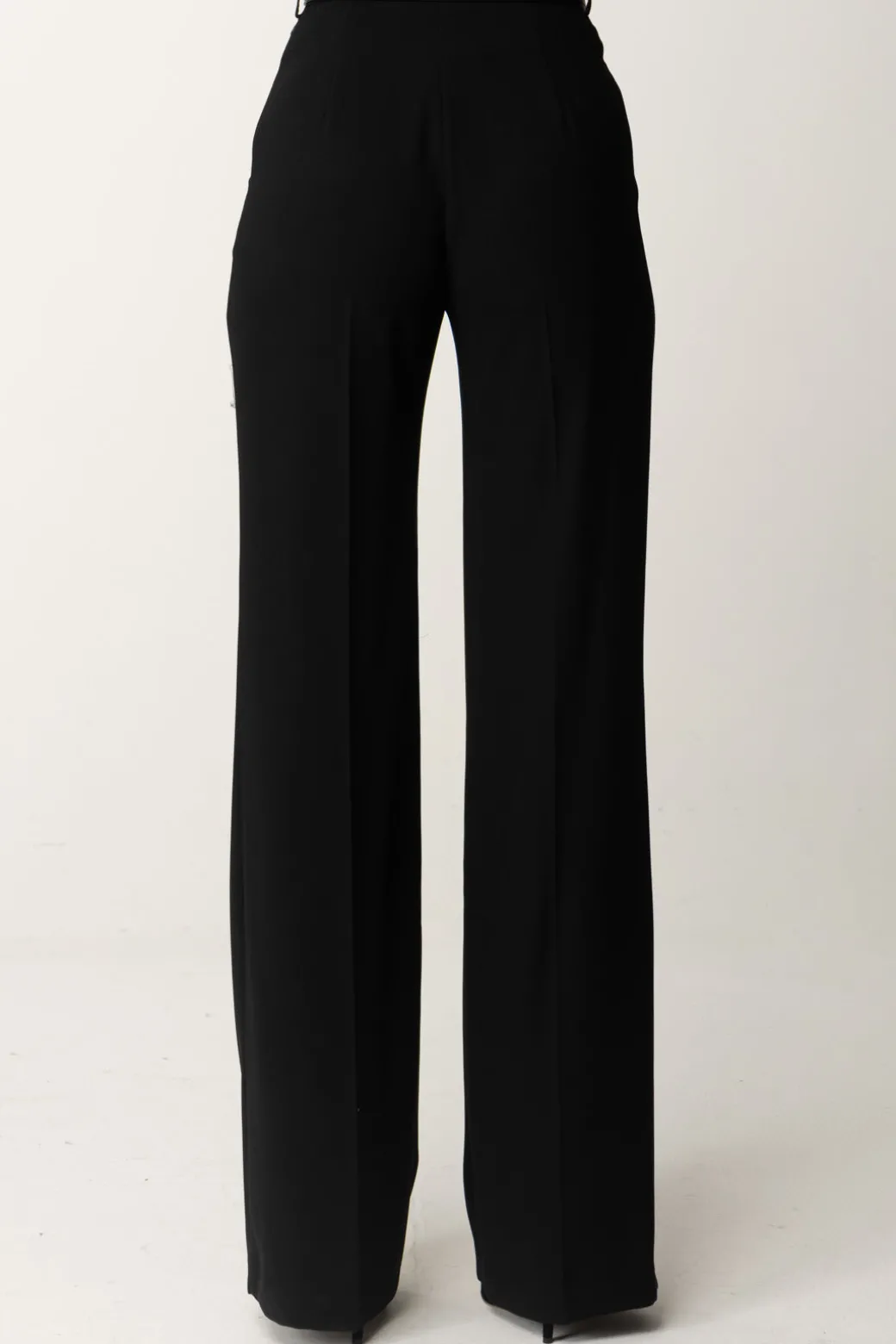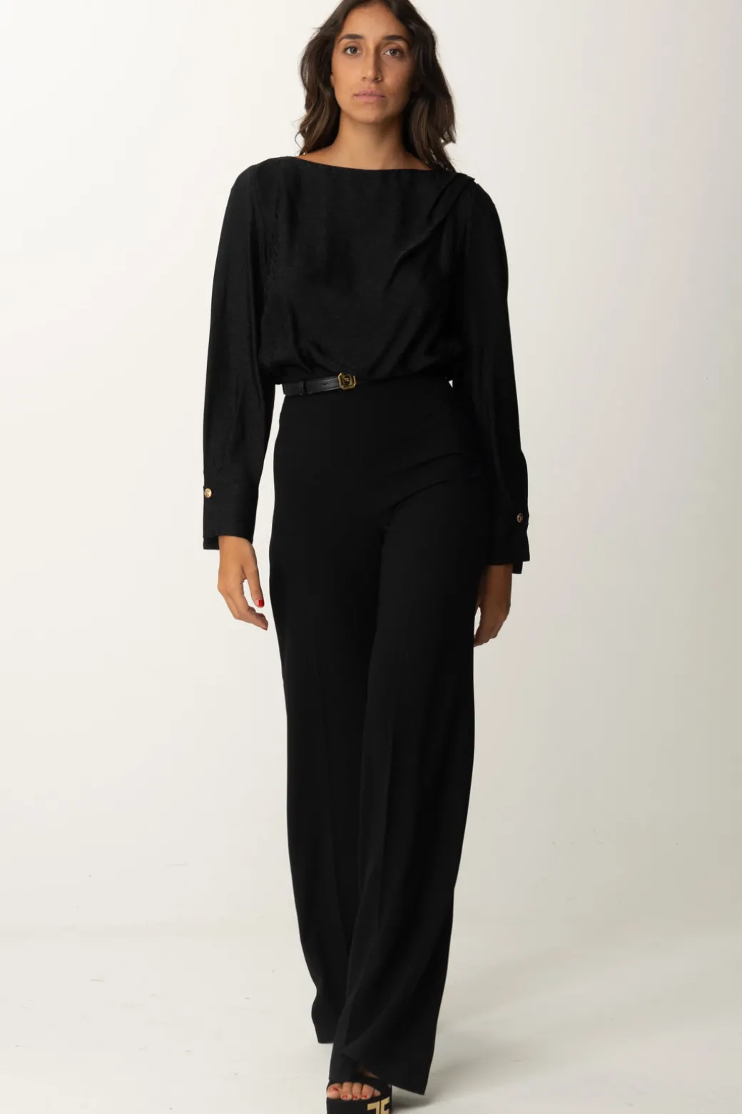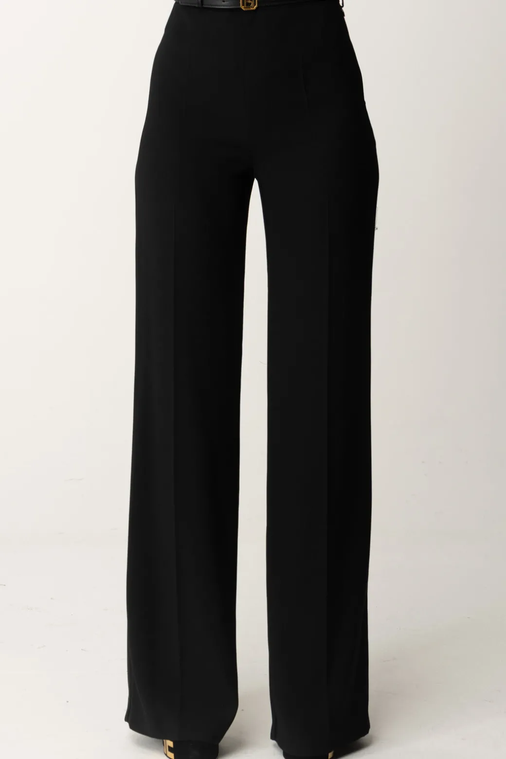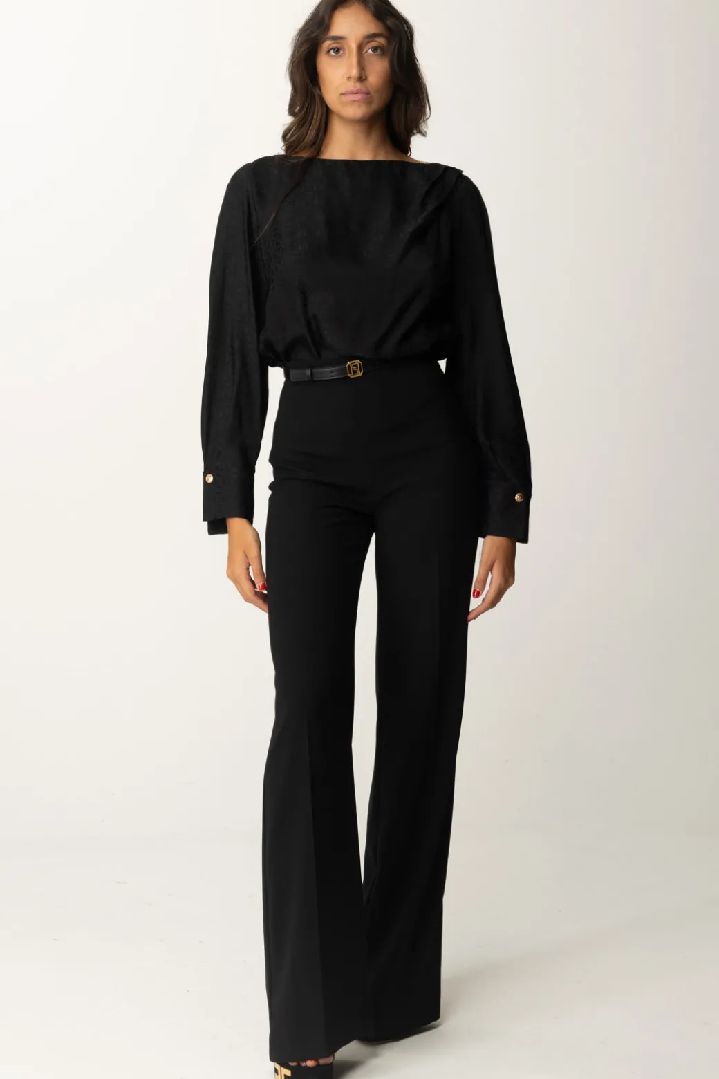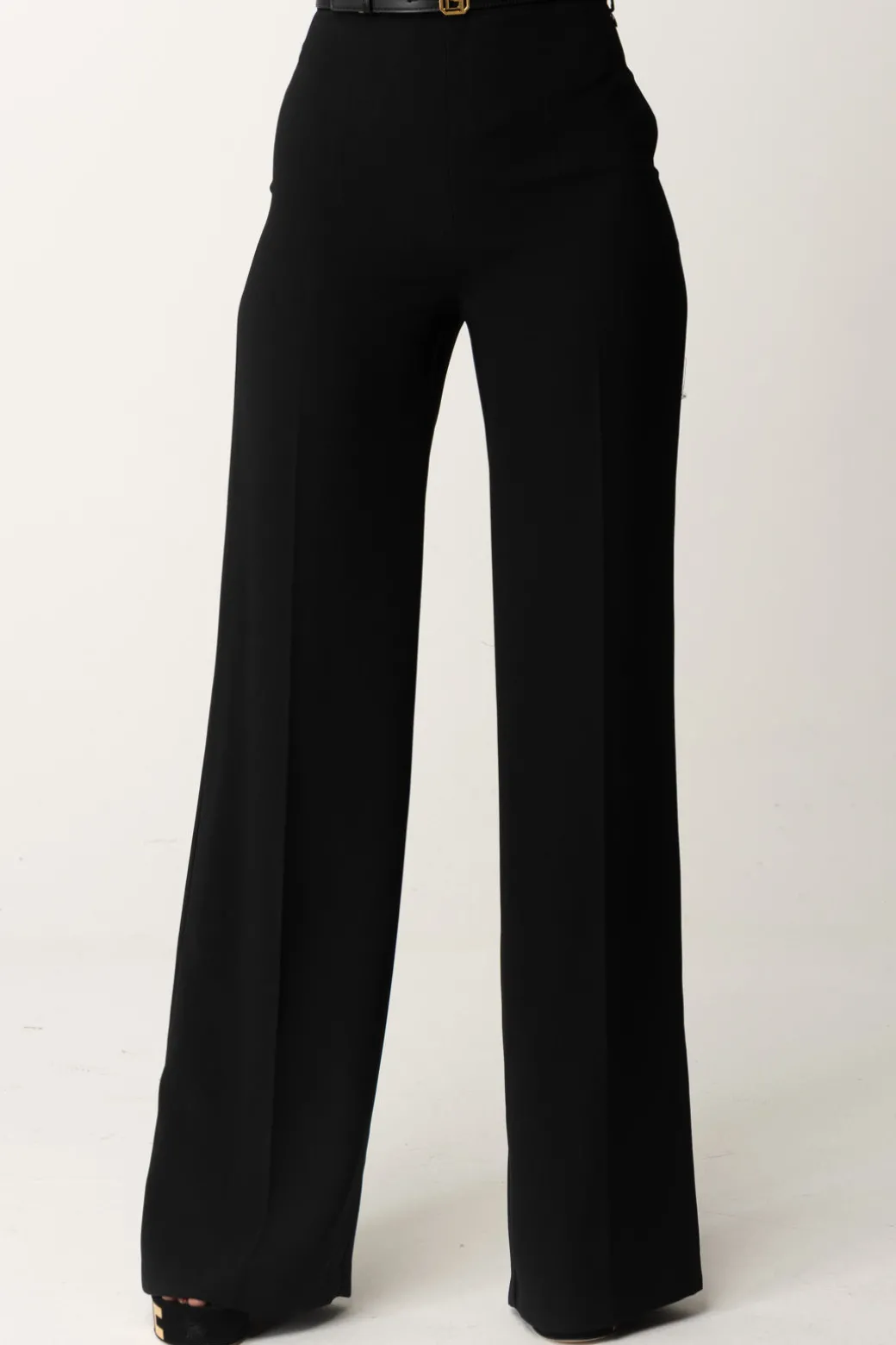 Eleganza e comfort si incontrano in questi Pantaloni palazzo Elisabetta Franchi, realizzati in raso con stiro piega, presentano un dettaglio luminoso sul punto vita che viene esaltato da una cintura con fibbia dorata, perfetta per un look sofisticato e curato nei dettagli.