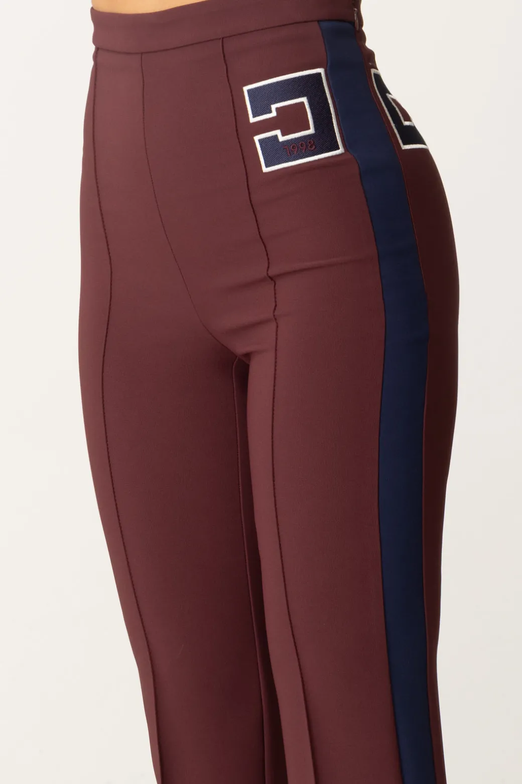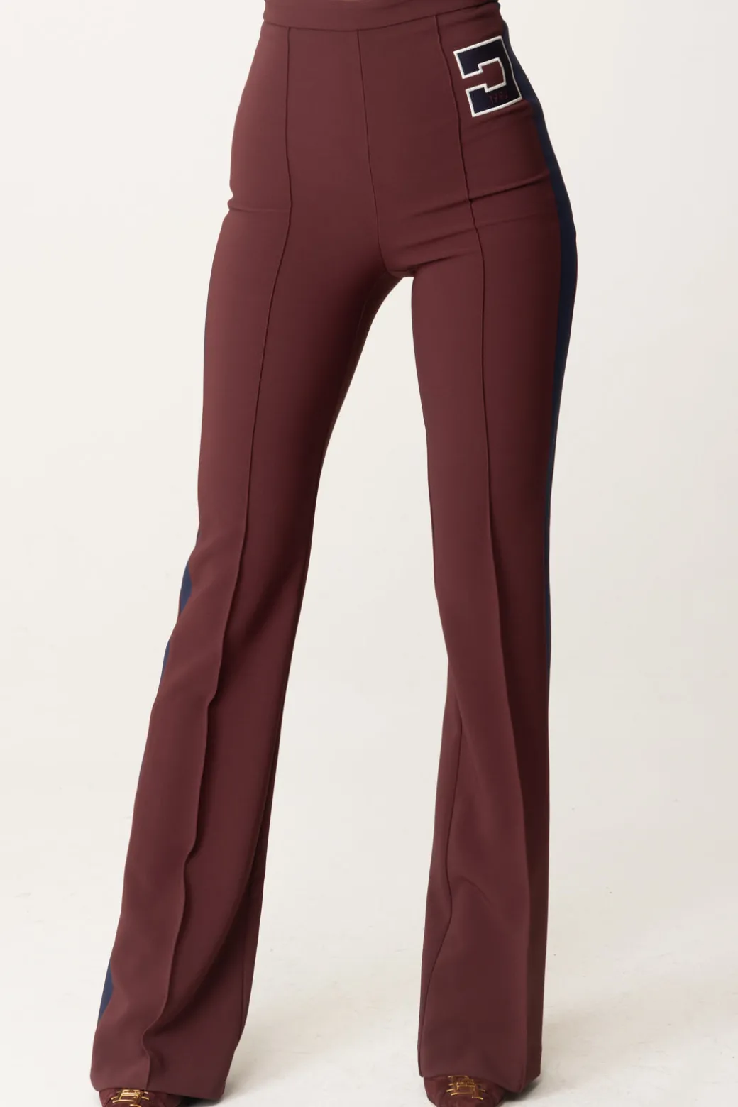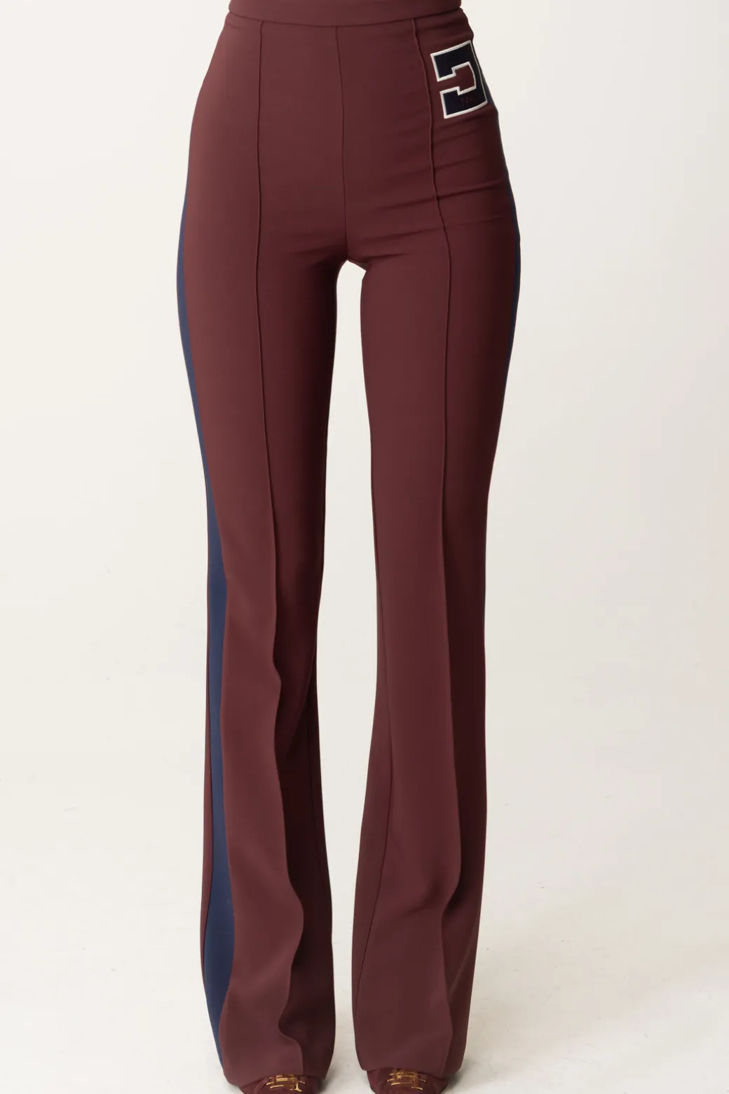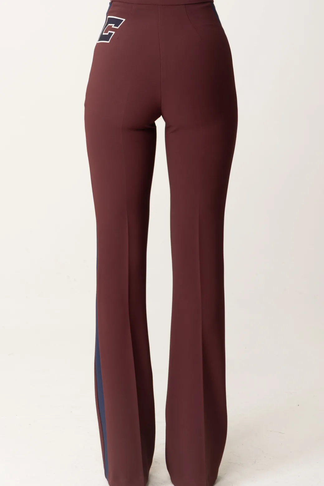 Pantaloni Elisabetta Franchi dal taglio dritto e leggermente svasato al fondo. Abbraccia un mood femminile che si caratterizza da bande e ricamo logo a contrasto sul fianco per un’aggiunta un po’ più sportiva al look finale. Perfetto per un outfit abbinato a una camicia e mocassini, ma anche t-shirt o maglie chic.
