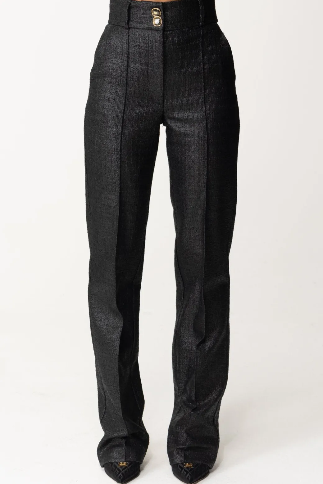Elisabetta Franchi Pantaloni Vita Alta In Tweed LaminatoNERO