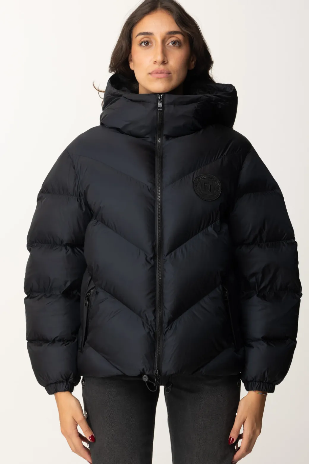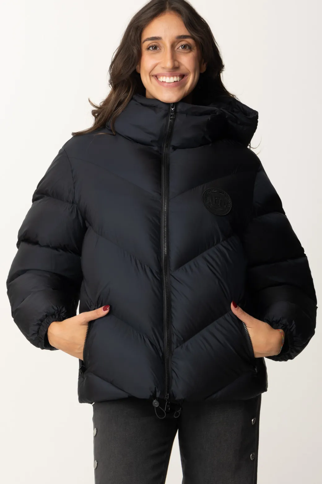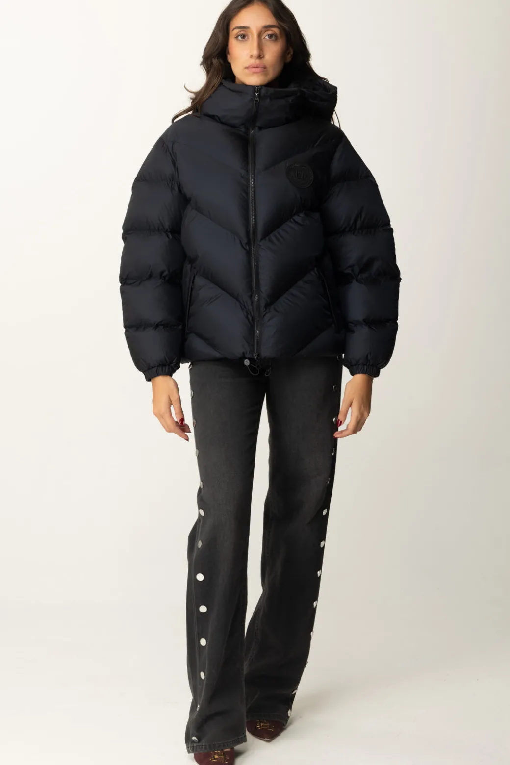 Piumino Elisabetta Franchi che si farà notare per i suoi volumi: non solo per l’imbottitura trapuntata in stile chevron, ma anche per il fit over, pensato per dare un tocco urban ai tuoi outfit più quotidiani. Cappuccio con collo a cratere, lo completa il logo ricamato in tinta sul petto e una coulisse al fondo per regolarne l’ampiezza.
