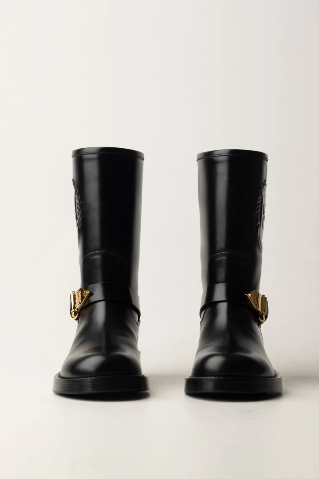La versatilità tipica di questa calzatura con un’aggiunta di stile tipica della collezione: il logo embossed in versione stemma che caratterizza questi stivali biker Elisabetta Franchi sarà una decorazione ricorrente in capi e accessori della AI24. Provali con leggings e maxi dress, così come con abiti in maglia a cui aggiungere una nota gritty per i tuoi outfit da tutti i giorni.