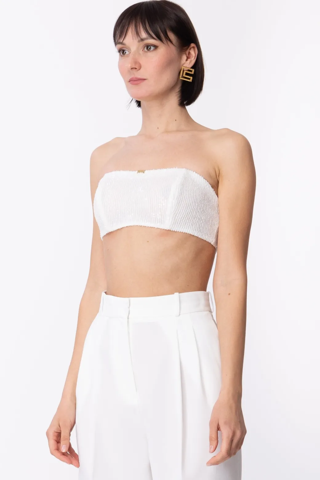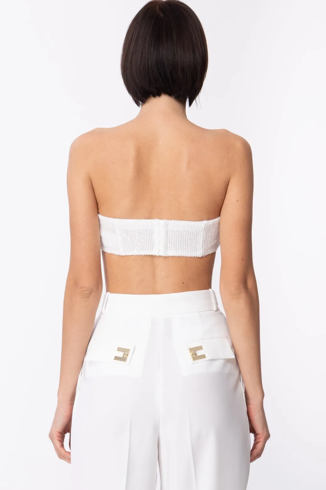 Elisabetta Franchi Top a Fascia In Full PaillettesAVORIO