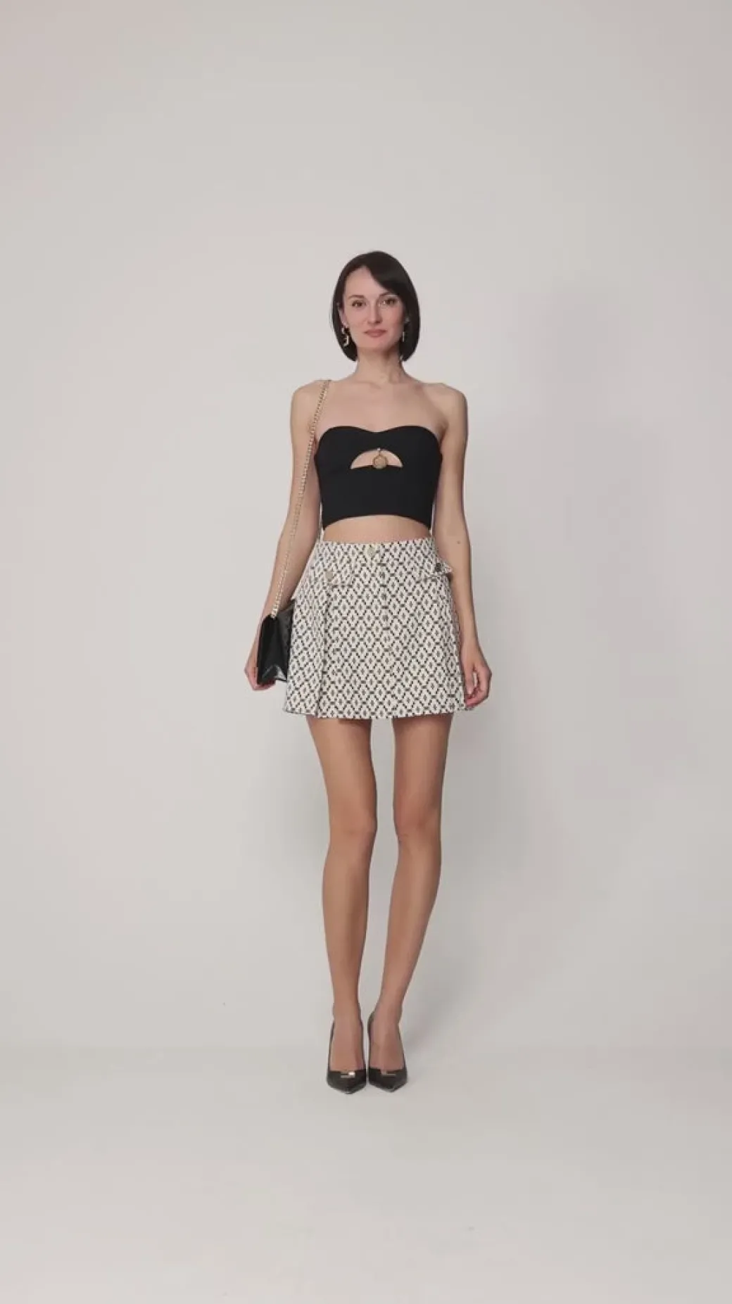 Top Elisabetta Franchi fresco e sexy, con un sinuoso scollo cuore e un cut-out al centro ornato da un ciondolo moneta. Perfetto con i tuoi bottom a vita alta, non ti resta che scegliere la tinta che piace a te!