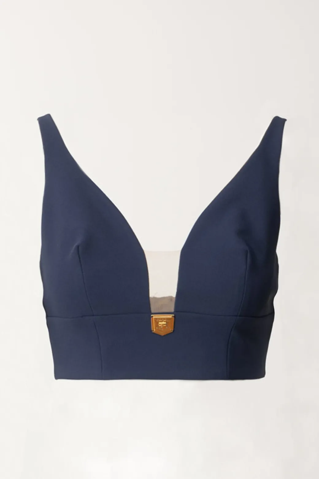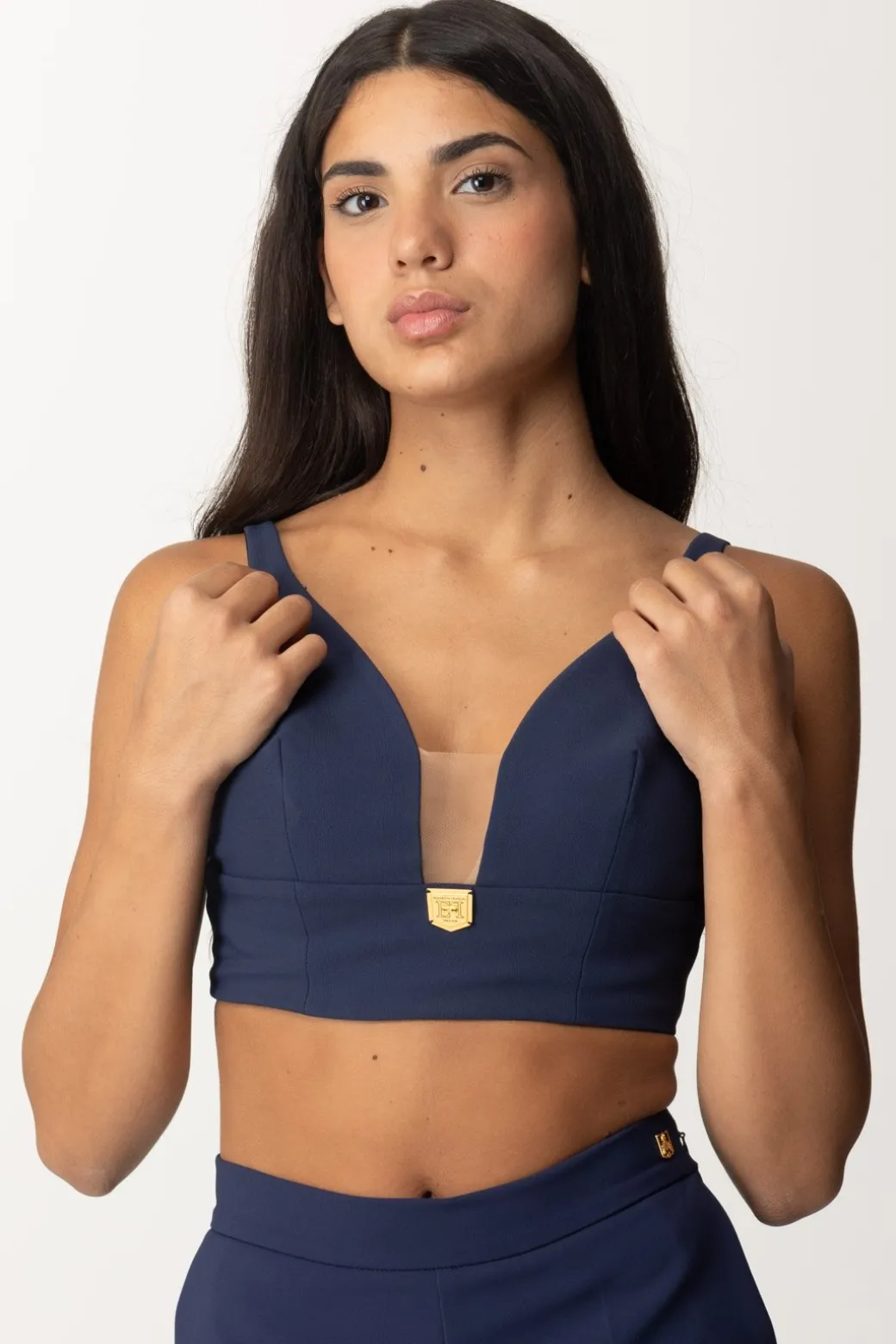 Top Elisabetta Franchi super crop: elegante doppio crepe illuminato da una placca logo in oro a chiusura della scollatura, sarà un perfetto bustino per i tuoi outfit più femminili, con spalline logate e regolabili.